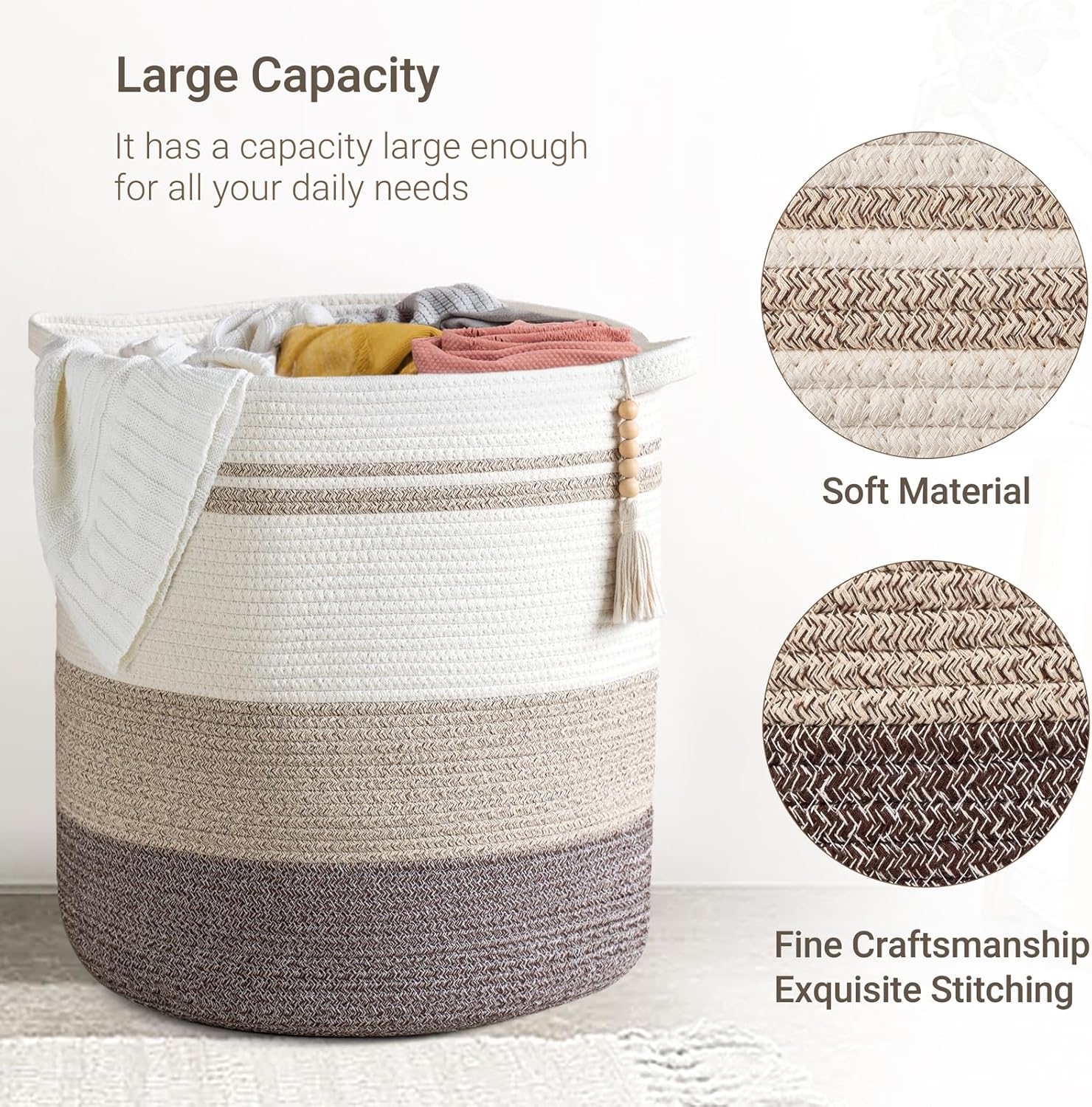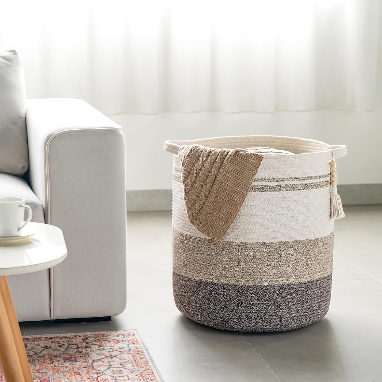 Mkono Tall Laundry Basket 80L Decorative Cotton Rope Laundry Hamper with Handle Woven Storage Baskets for Blanket Clothes Towels Pillow Toys Organizer Bin Livng Room Bedroom Entryway Home Decor