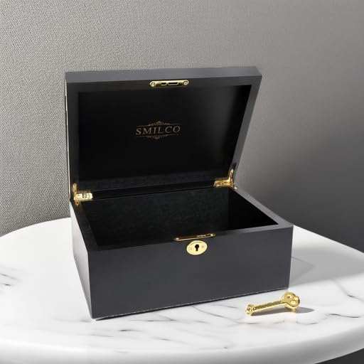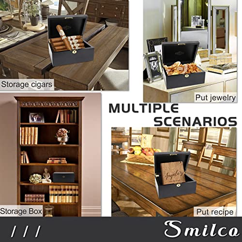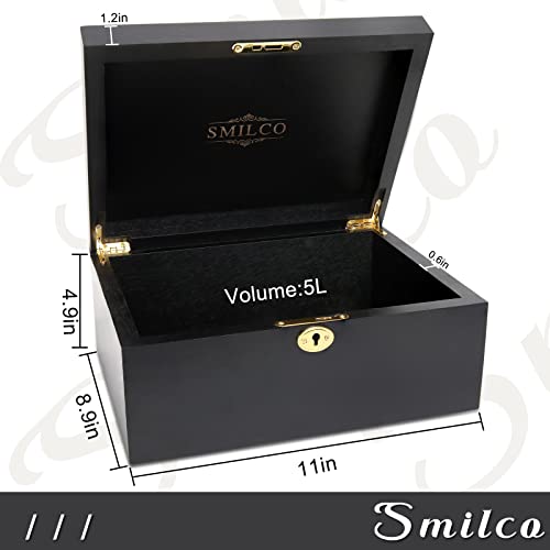 Smilco Wooden Box with Hinged Lid Acacia Wood Decorative Storage Boxes Hand-Crafted Wooden Box for Recipes Decorative Storage or as Keepsake.(Black)