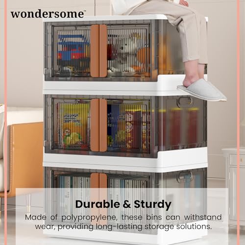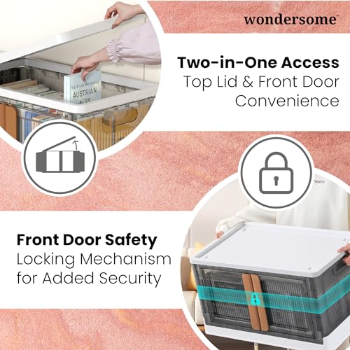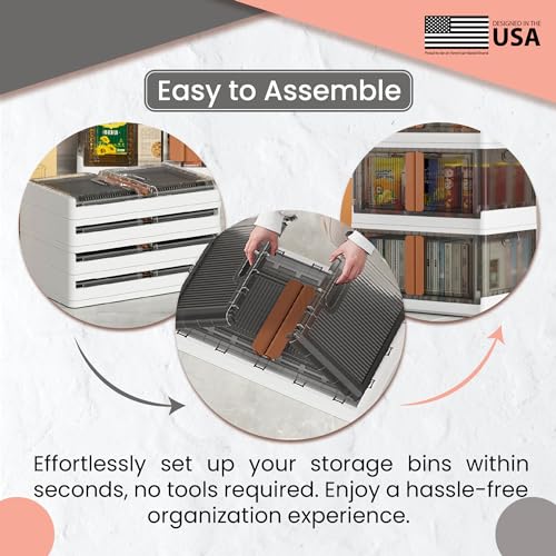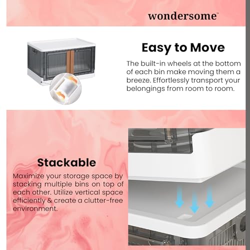 Collapsible Storage Bin - Large 8.5-Gallon/33.8-Quart Heavy-Duty Stackable Wheeled Clothing, Shoe, Bedroom, Office Organizer - Foldable Container and Assembles in Moments - US-Based Brand