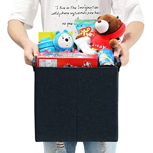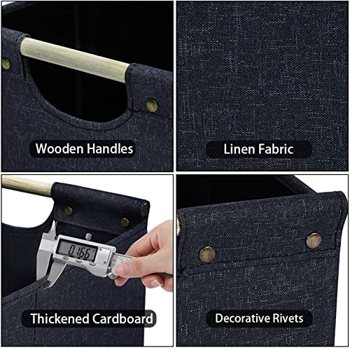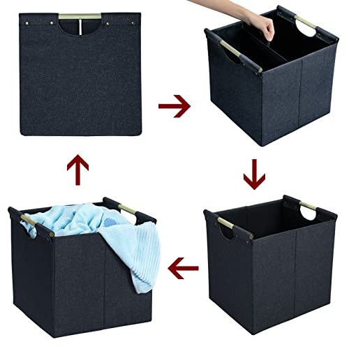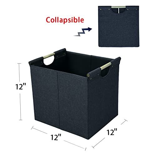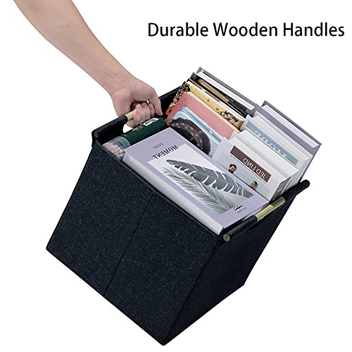HOONEX Collapsible Storage Bins, 12x12x12in Storage Cubes Linen Fabric, Pack of 3, Storage Baskets with Wooden Carry Handles and Sturdy Heavy Cardboard, for Home, Office, Car, Nursery, Brown