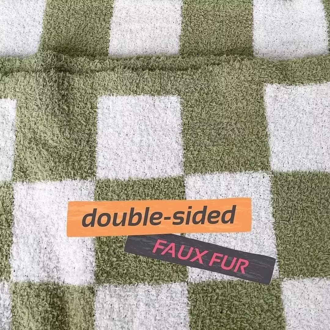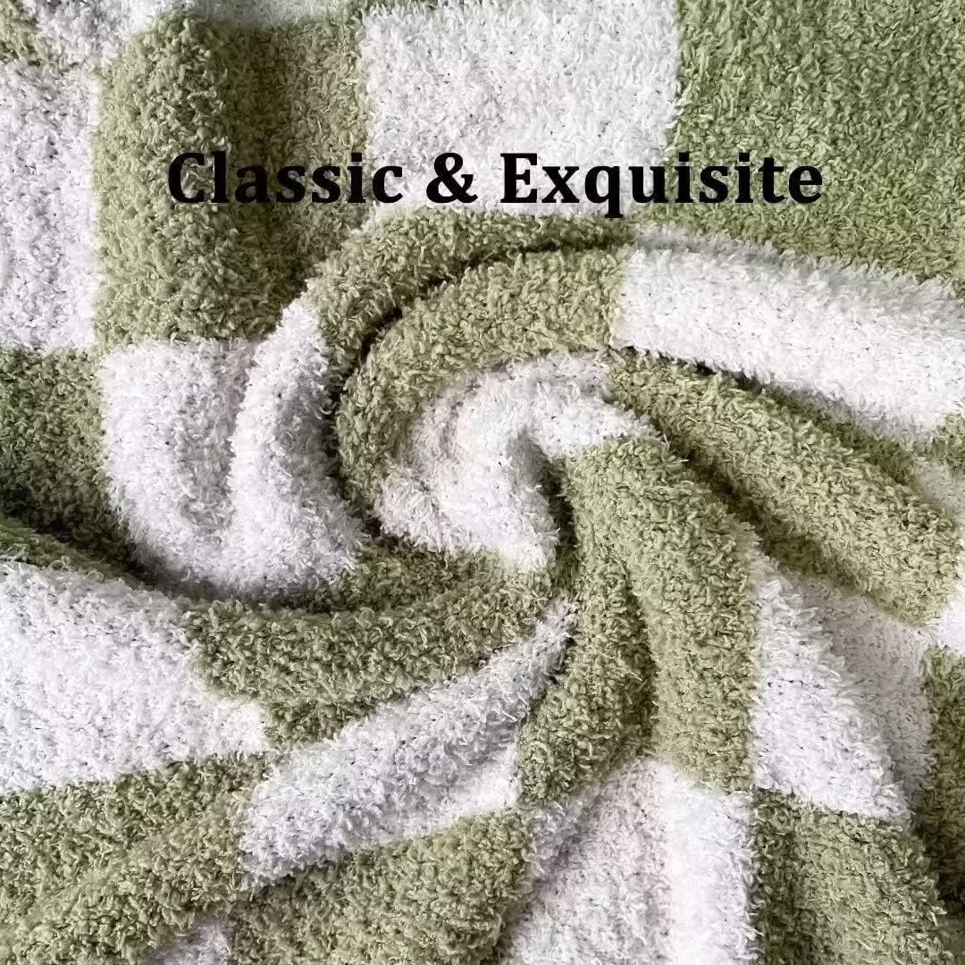 Ultra Soft Checkered Blanket Cozy Buffalo Check Throw Fluffy Knitted Reversible Throw Blanket Lightweight Fleece Checkerboard Grid Blanket for Sofa Couch Bed Travel, Sage Green, 51''x63''