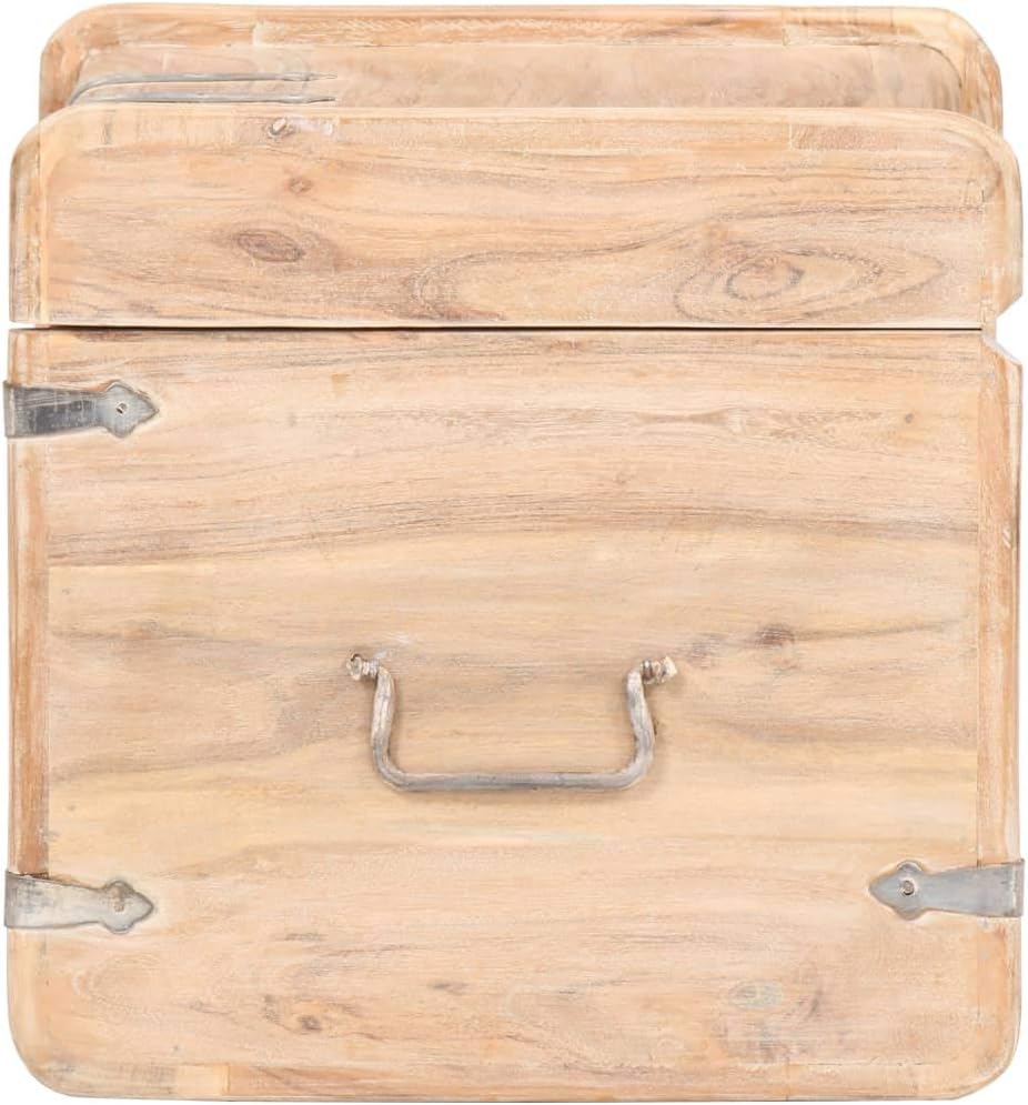 Tidyard Chest 15.7 x 15.7 x 15.7 Inches Solid Acacia Wood Blanket Storage Box, Wooden Trunk for Living Room, Bedroom, Closet, Home Organizer B