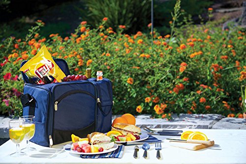 PICNIC TIME Malibu Cooler Picnic Basket, Insulated Cooler Tote with Picnic Set, (Navy Blue with Black Accents)
