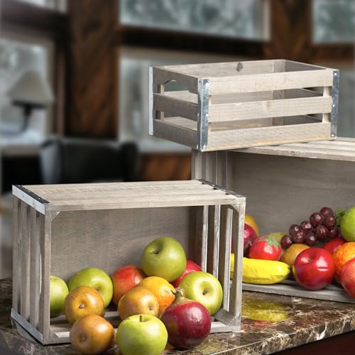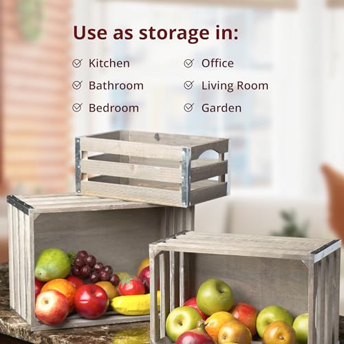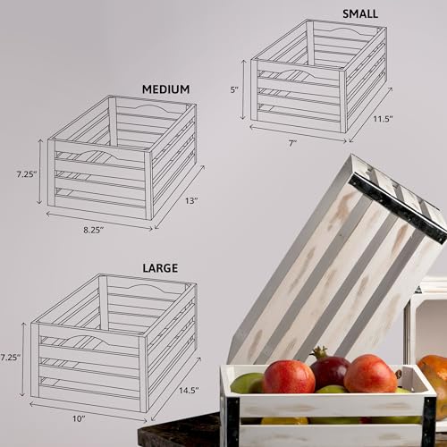 wald imports - Set of 3 Distressed White-Washed Wooden Crates for Storage - Decorative Wooden Crate Set for Home Decoration & Display - Vintage Storage for Household Goods