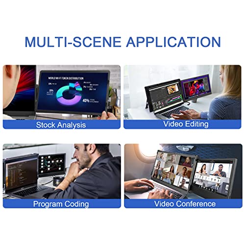Laptop Screen Extender, Portable Monitor for Laptop 12" Full HD IPS Display, Dual Monitor Extender Compatible with 13-16 Inch Windows, Chrome & Mac