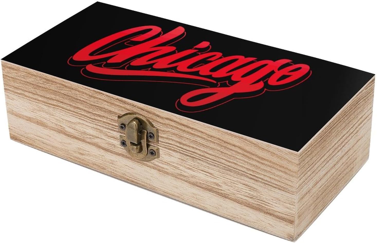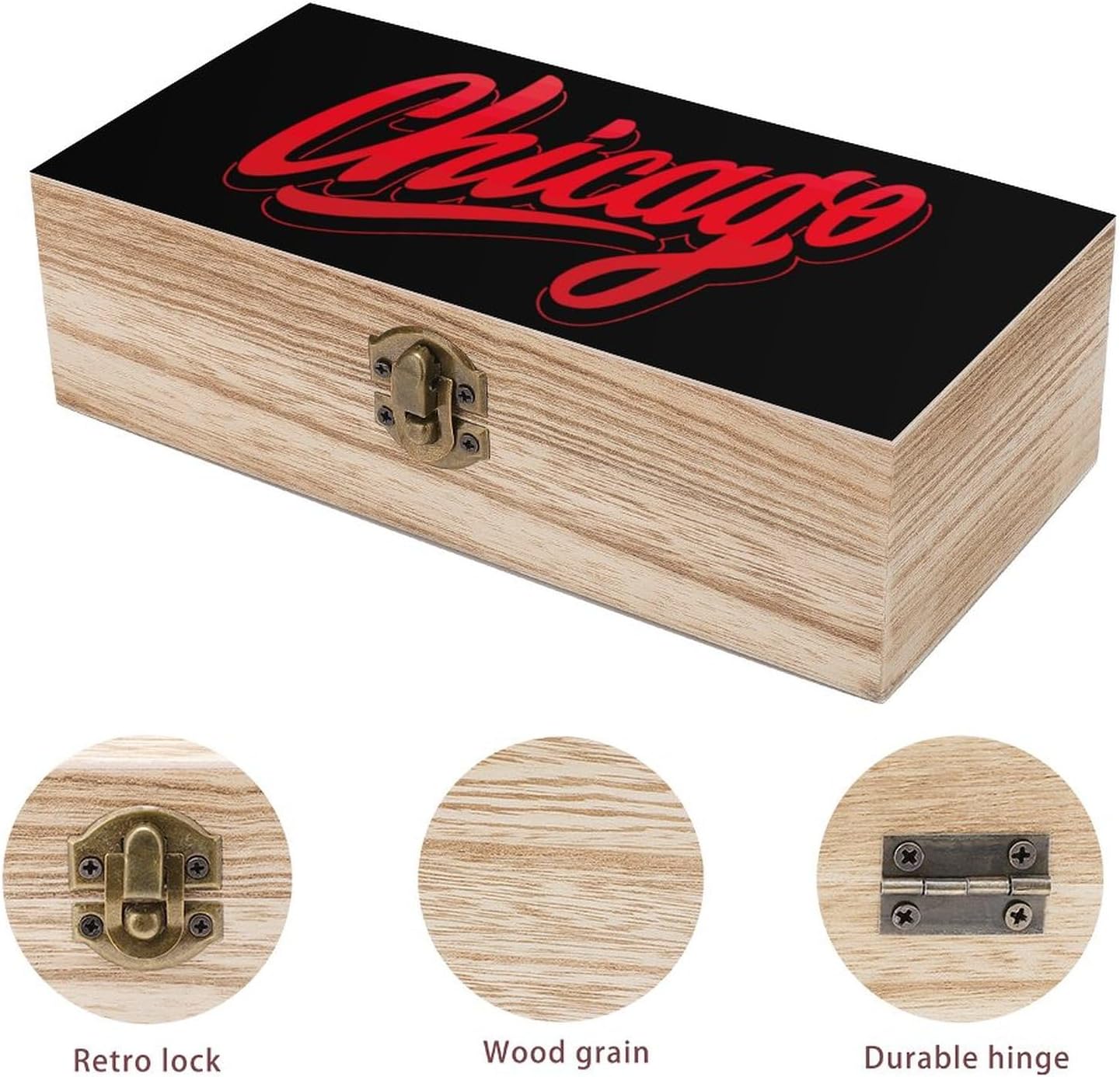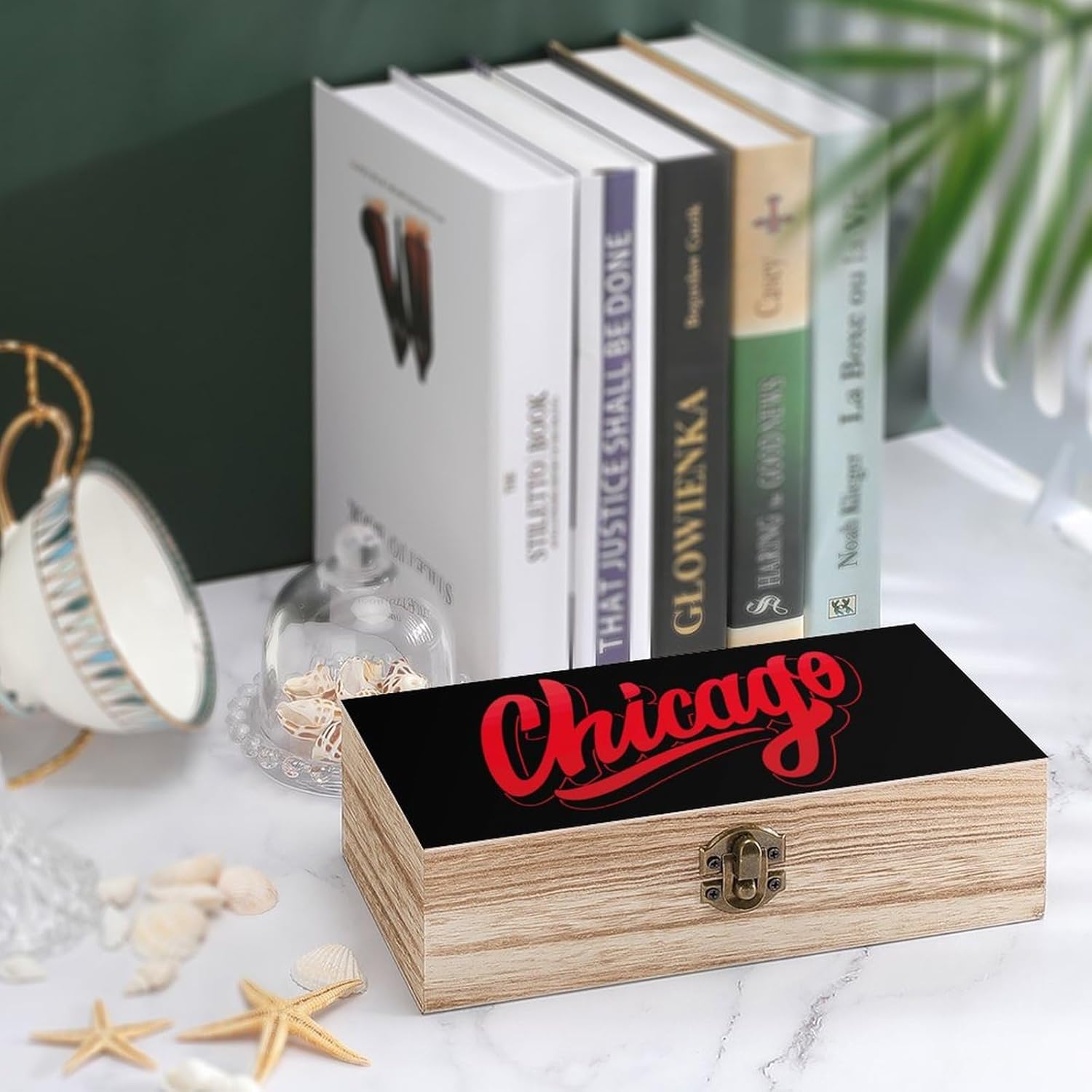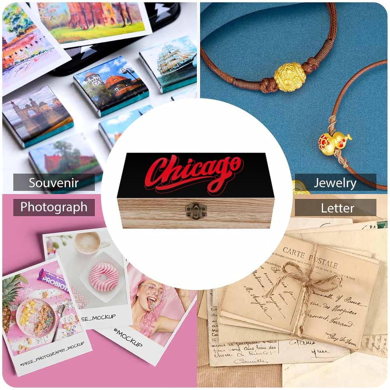 Chicago Wooden Storage Box Printed Craft Jewelry Organizer Boxes with Hinged Lid and Front Clasp 8 X 4 X 2.5 Inch
