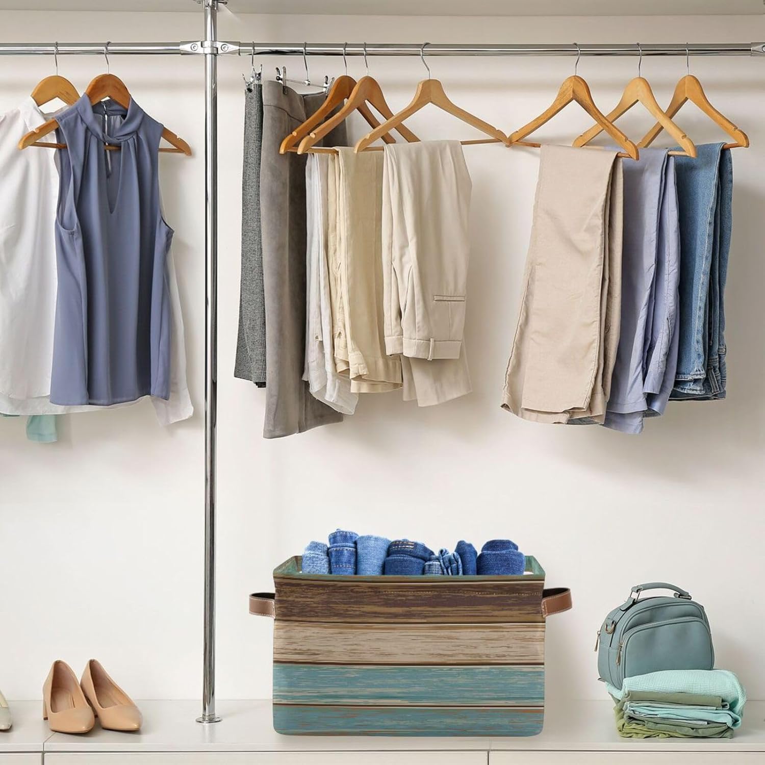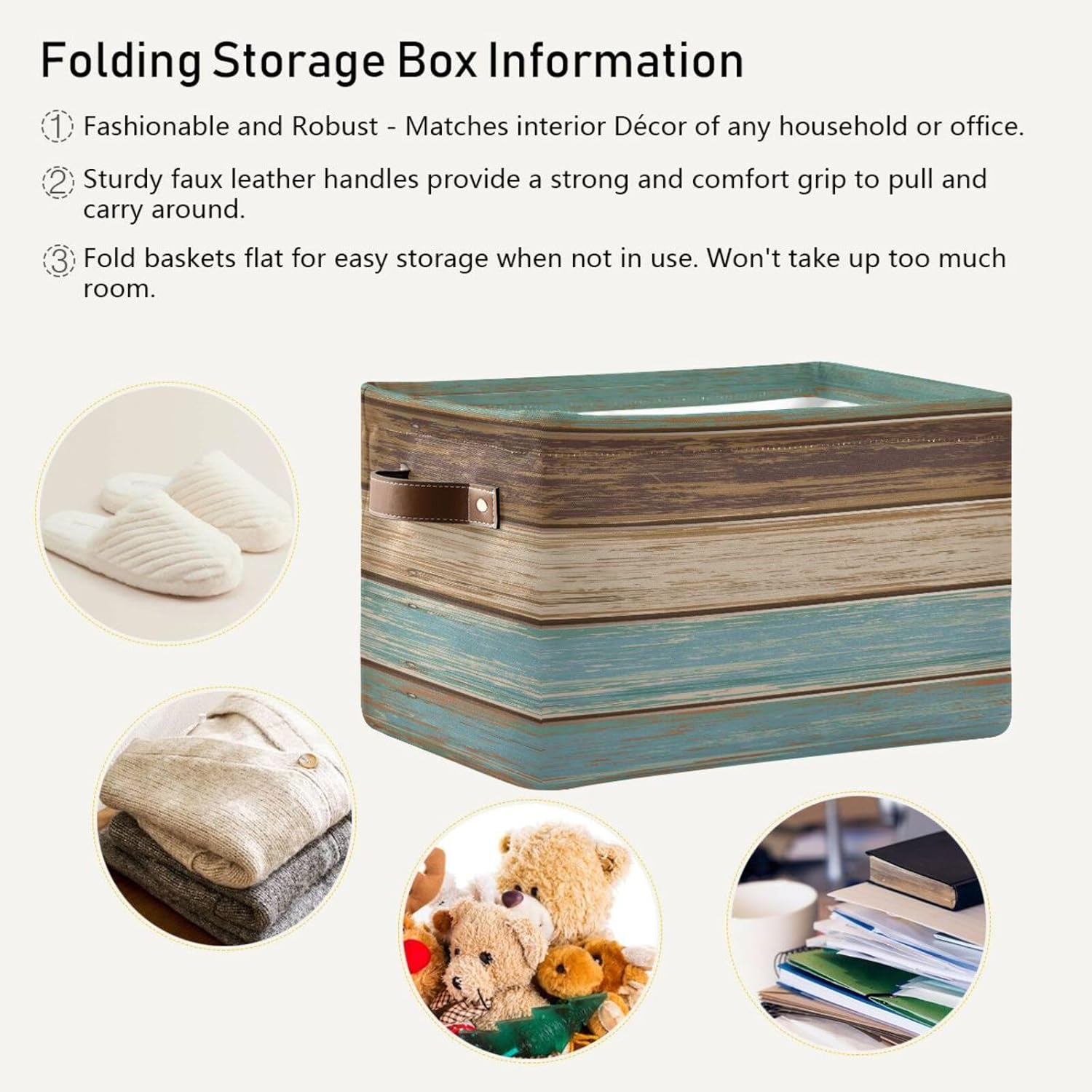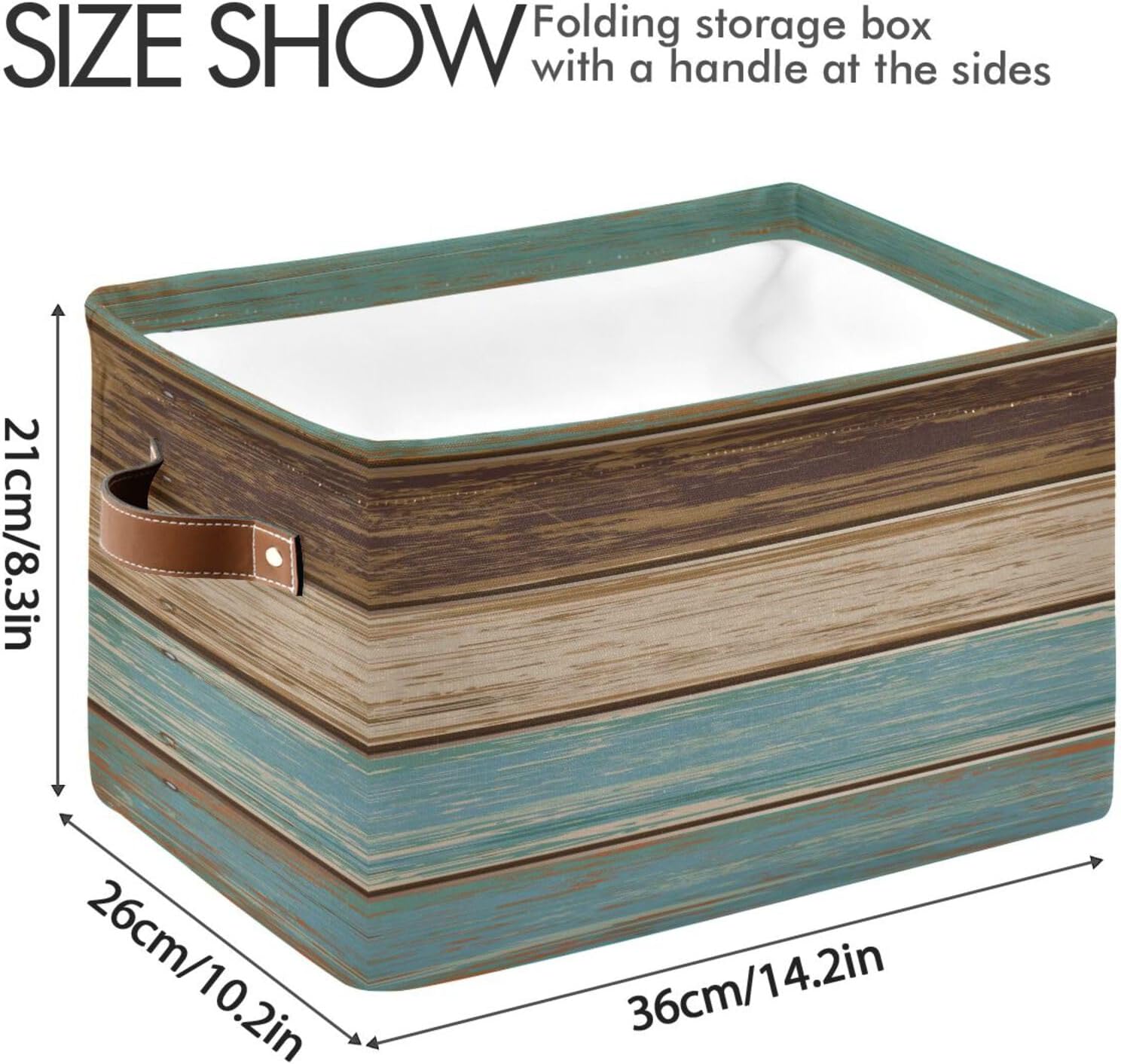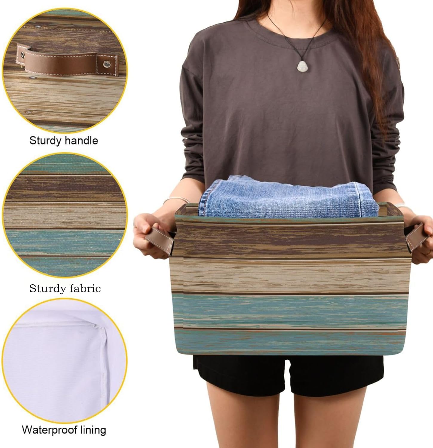 Farmhouse Wood Wooden Basket Decor Storage Bin Basket For Shelf Closet Foldable Fabric Storage Box Cube With Handles Large Kids Toys Clothes Organizer Basket For Nursery Bedroom