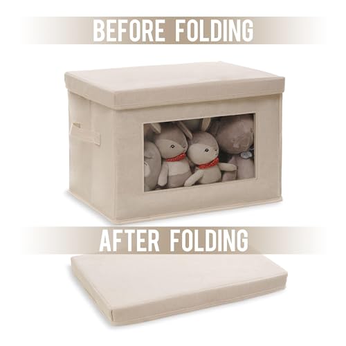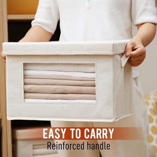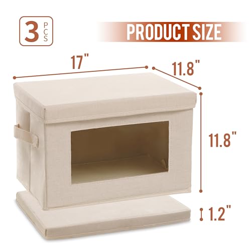 Citylife 3 Pack Storage Bins with Lids, Fabric Foldable Storage Bins with Soft Cord Handles, Canvas Storage Bin with Lid for Organizing Clothes, Blankets and Books, Beige