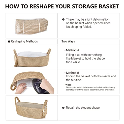 Mkono Small Storage Basket for Toilet Tank Top Boho Bathroom Decor Woven Rope Toilet Paper Tray Back of Toilet Organizer for Shelf Bedroom Living Room, White, 1 Pack, 13" L x 6" W
