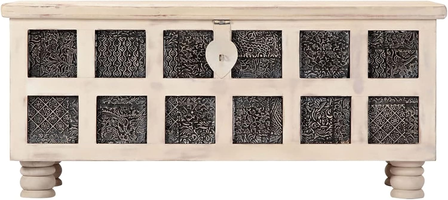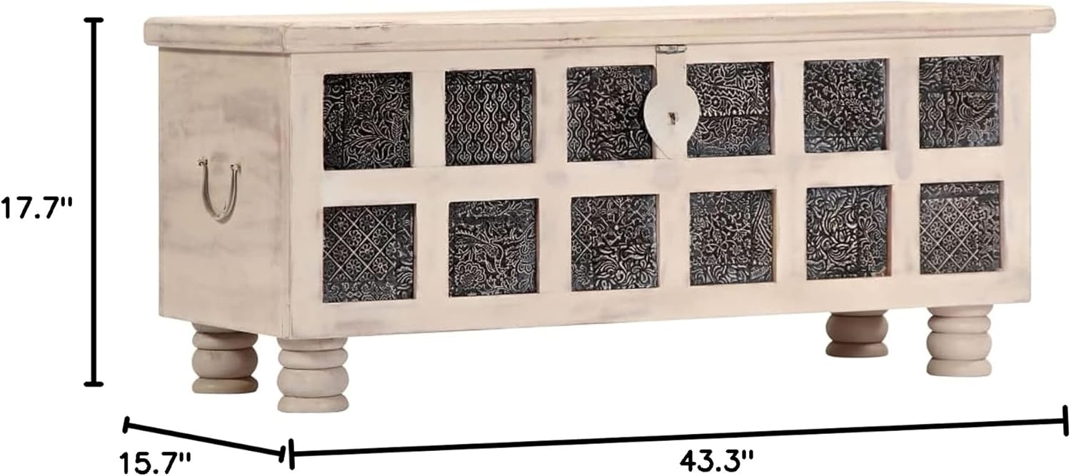 Tidyard Storage Chest Acacia Wood Blanket Box Wooden Trunk White for Bedroom, Closet, Home Organizer Living Room 43.3 x 15.7 x 17.7 In