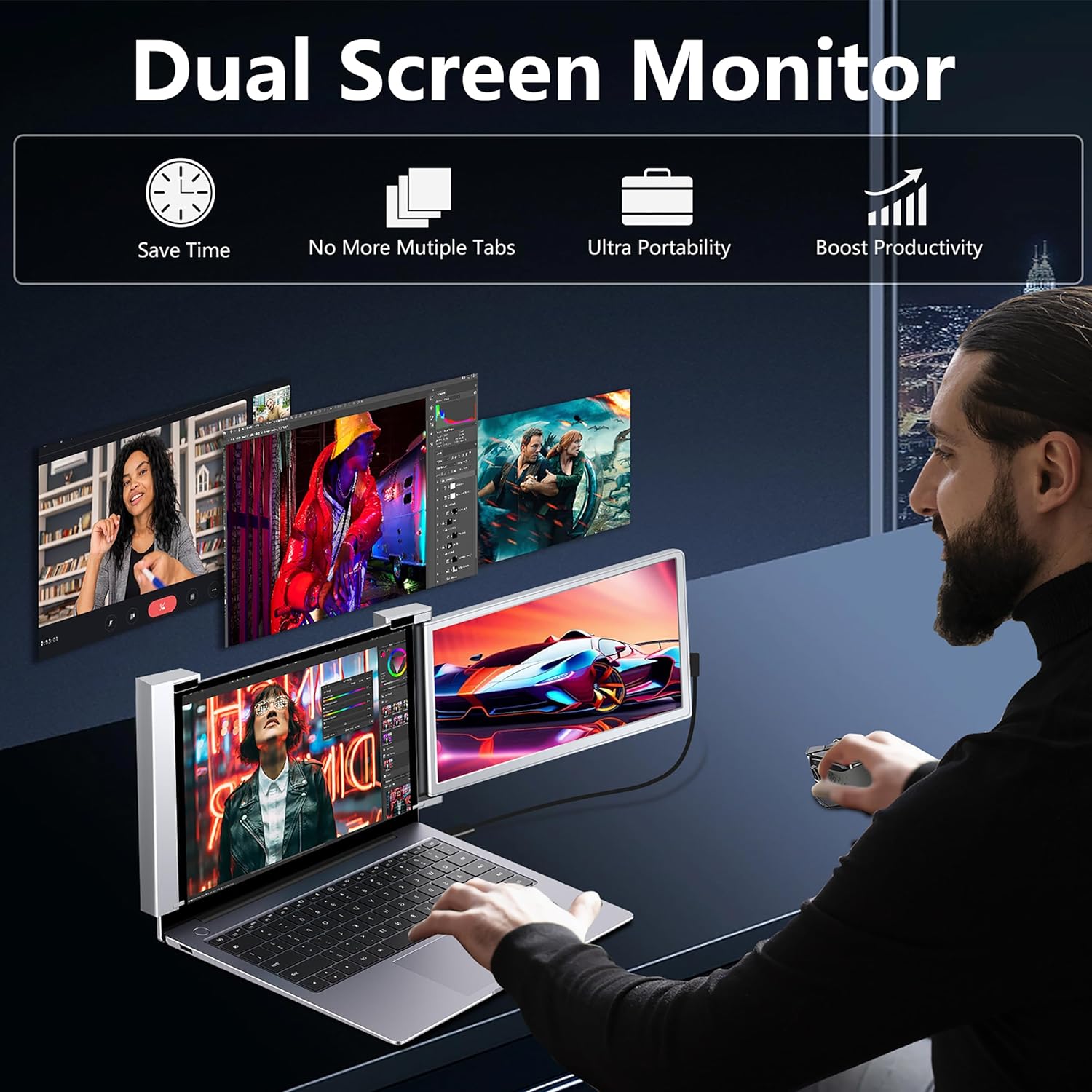 14” Dual Laptop Monitor Extender- FHD 1080P IPS Portable Screen Extender with USB-C & Mini HDMI Port, Plug & Play, Easy to Carry, Lightweight Side Screen for 14-17.3” Laptops, Switch, Xbox