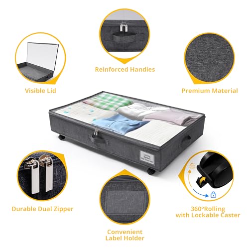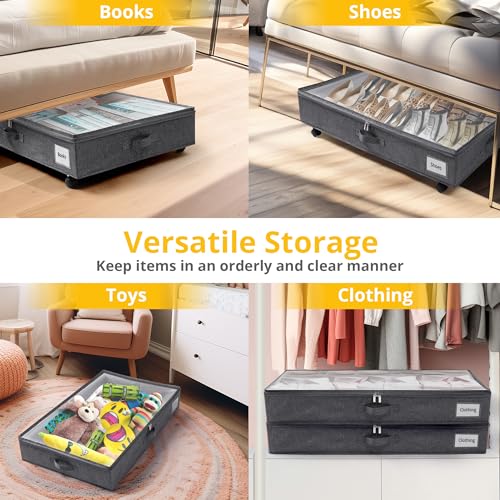 KitHreo Under Bed Storage with Wheels, 2 Pack Underbed Storage Containers, Rolling Under Bed Organizer, Large Capacity, Easy Assembly, Sturdy, Under Bed Drawers on Wheels for Clothes, Shoes, Toys