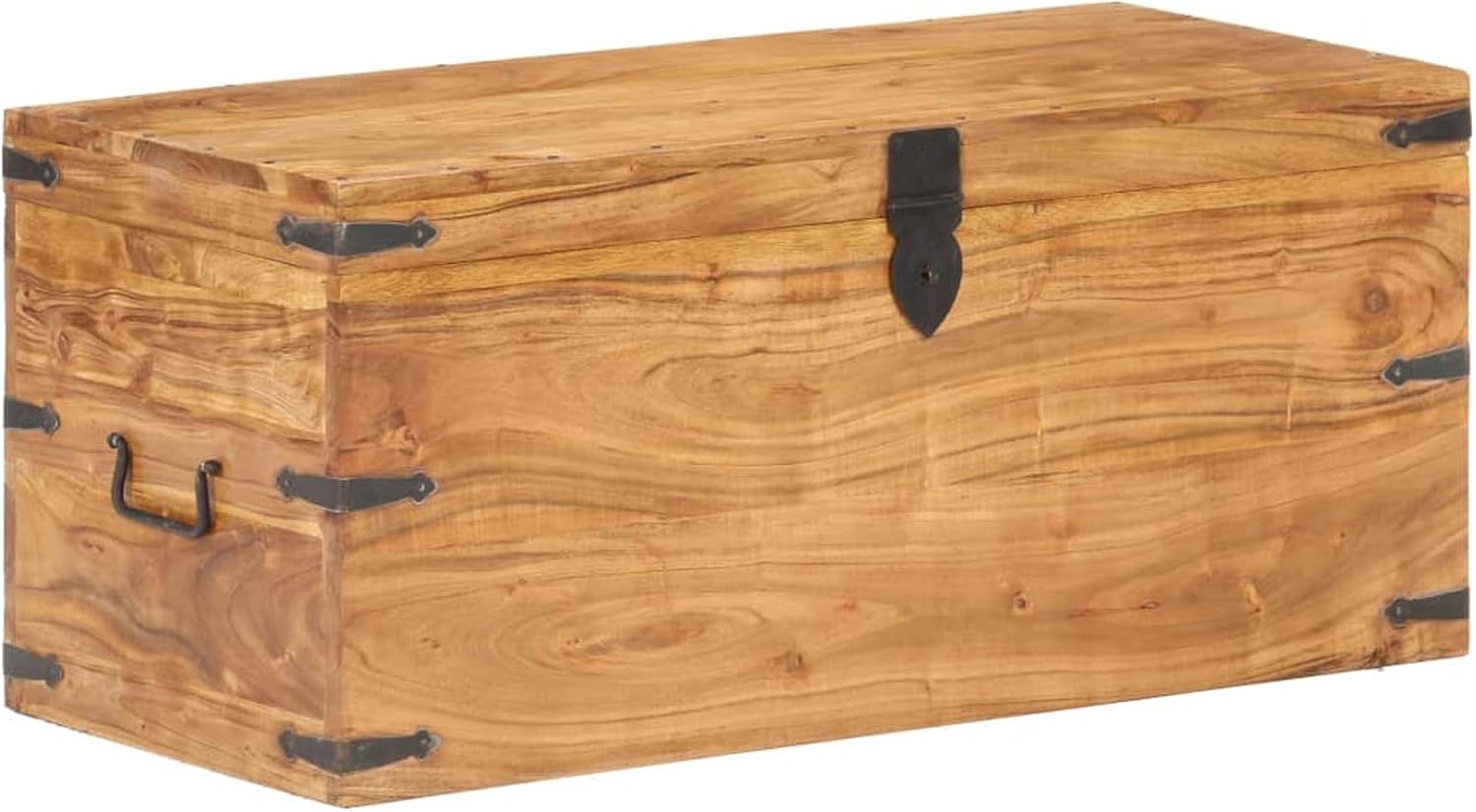 Tidyard Chest 35.4 x 15.7 x 15.7 Inches Solid Acacia Wood Blanket Storage Box, Wooden Trunk for Living Room, Bedroom, Closet, Home Organizer B