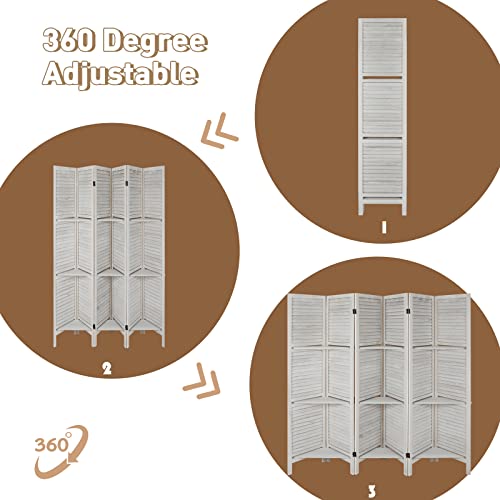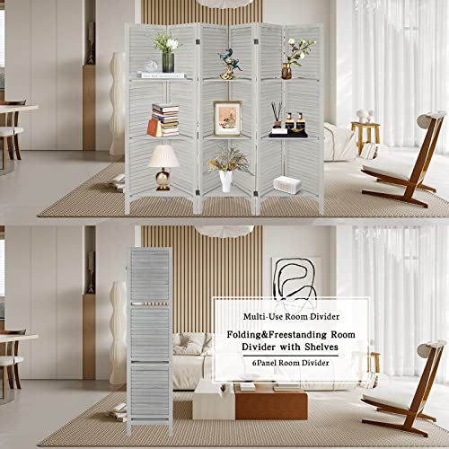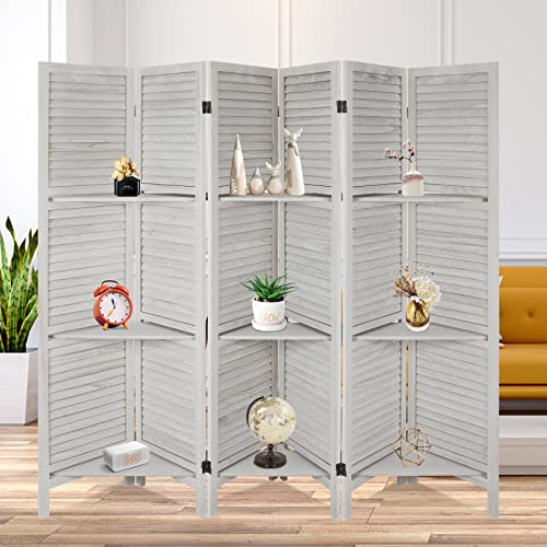 Room Divider with Shelves, 4 Panels Room Dividers and Folding Privacy Screens, Folding Room Screens, Freestanding Portable Wall Divider, Wood Dividers with Display Shelves, Brown