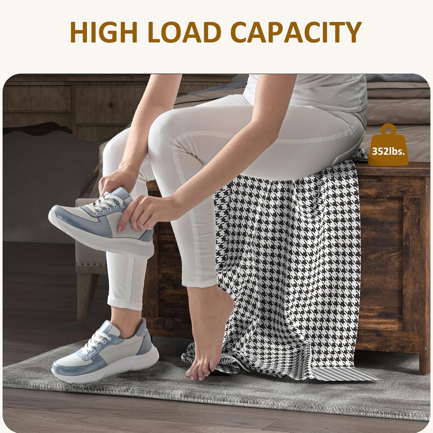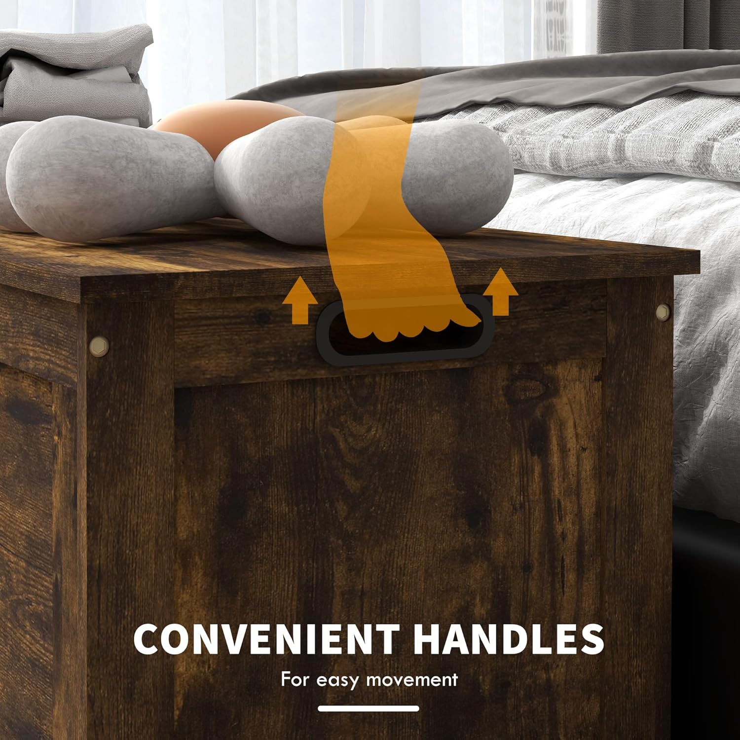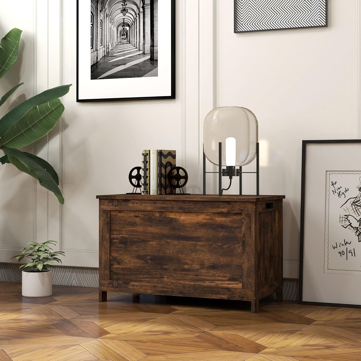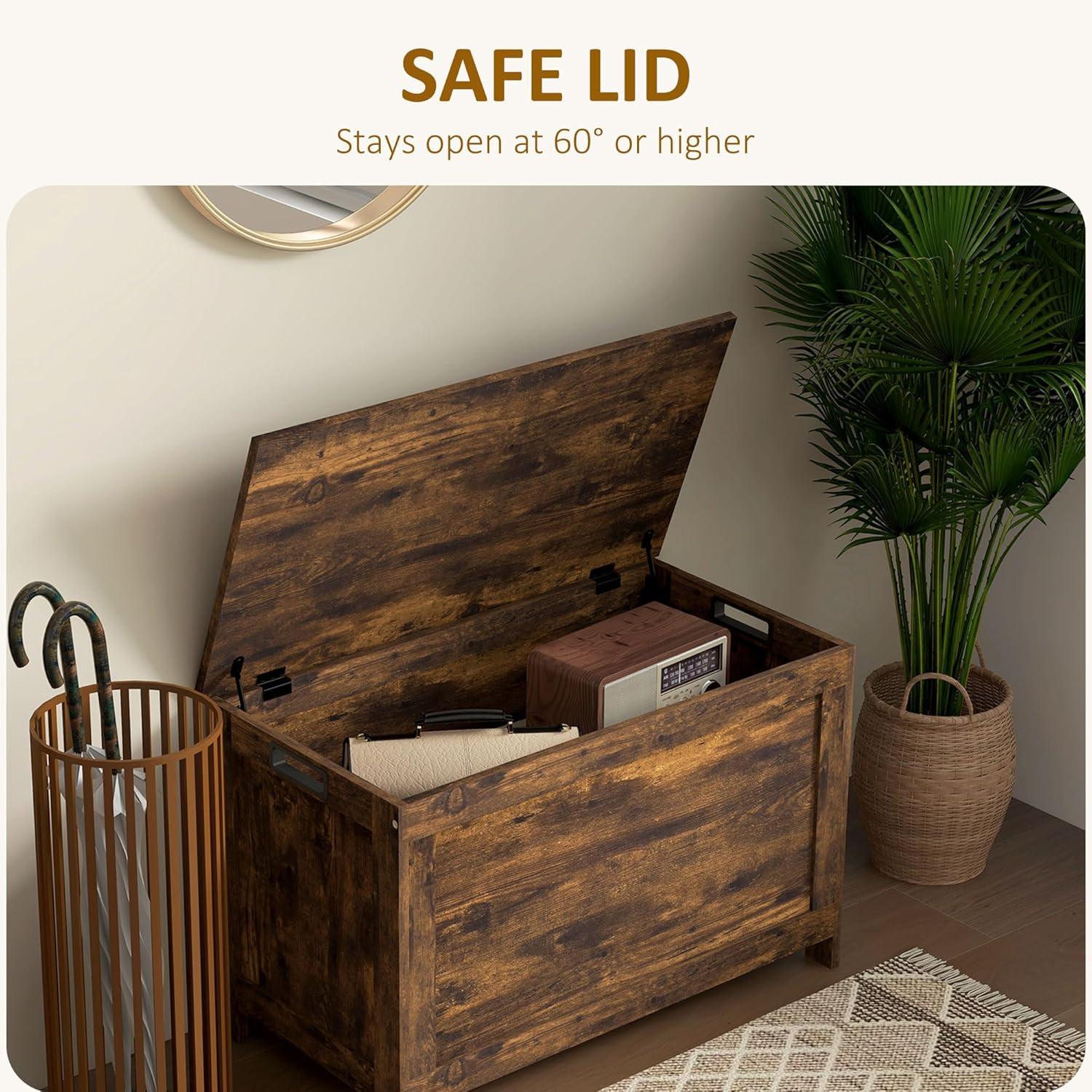 29.9" Storage Chest w/ 2 Safety Hinges, Wooden Box, Rustic Brown