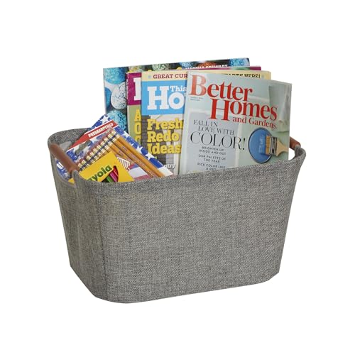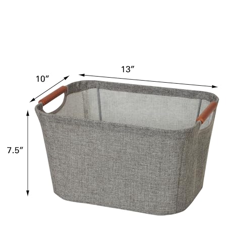 Household Essentials 601 Medium Shelf Basket with Wood Handles | Multi-Purpose Home Storage Bin | Brown Coffee Linen, Medium, Cocoa