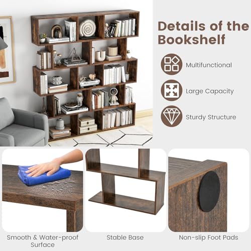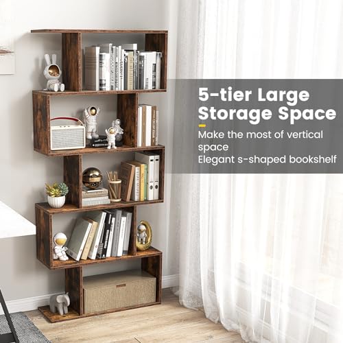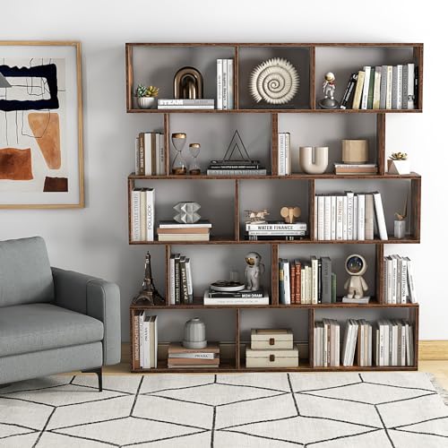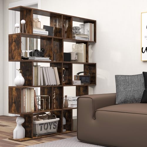 5-Tier Geometric Bookshelf, Freestanding Room Divider Bookcase, S-Shaped Decorative Storage Shelving, 62.5" Tall Display Book Shelf for Bedroom, Living Room (2, White)