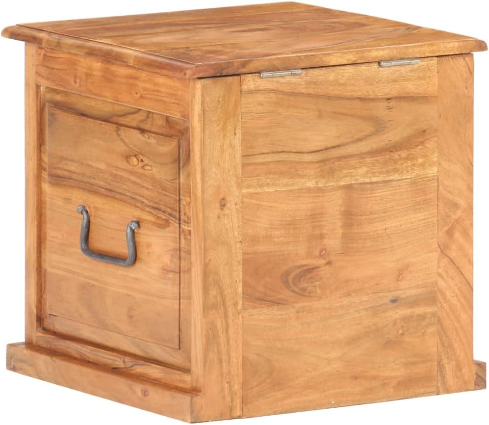 Tidyard Chest 15.7 x 15.7 x 15.7 Inches Solid Acacia Wood Blanket Storage Box, Wooden Trunk for Living Room, Bedroom, Closet, Home Organizer A