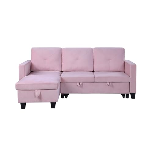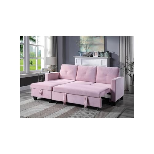 Boldly Bohemian Velvet Reversible Sleeper Sectional Sofa with Storage Chaise and Side Pocket Pink