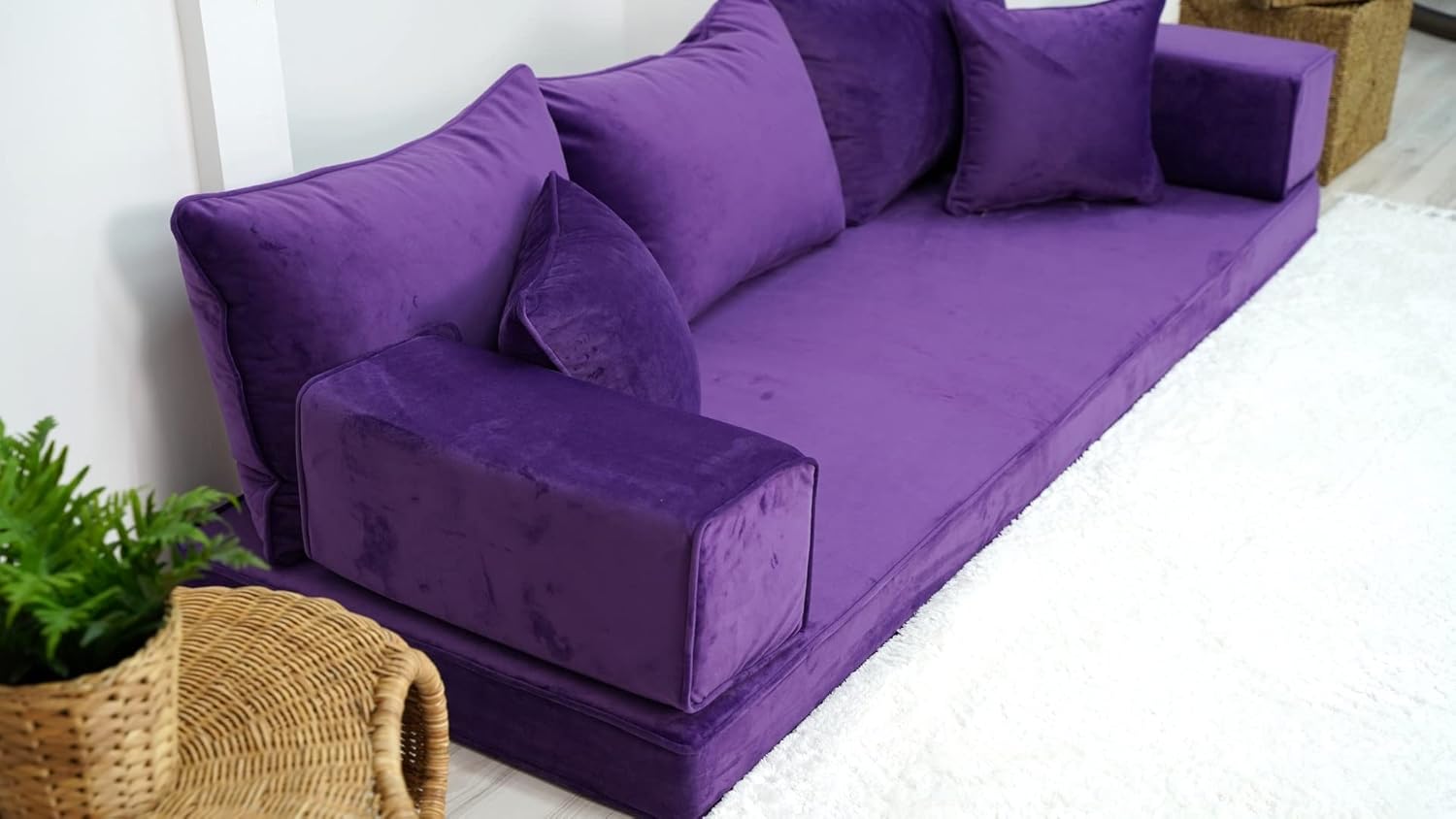 Premium Purple Fabric Velvet Floor Seating Set, Velvet Floor Couch, Floor Cushions, Sectional Sofa, French Cushions, Futon Cushion, Window Seat (4'' Thickness Sofa)