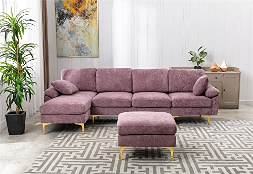 Modern Sectional Sofa L/U Shaped Couch with Extra Wide Chaise Lounge and Gold Legs Upholstered Modular Convertible Sofá Living Room Furniture for Home Office Living Room (Purple)