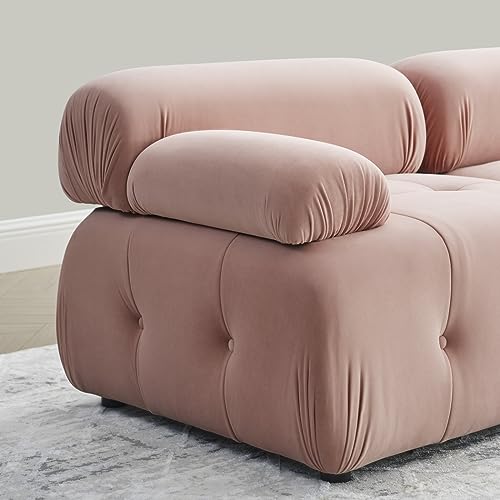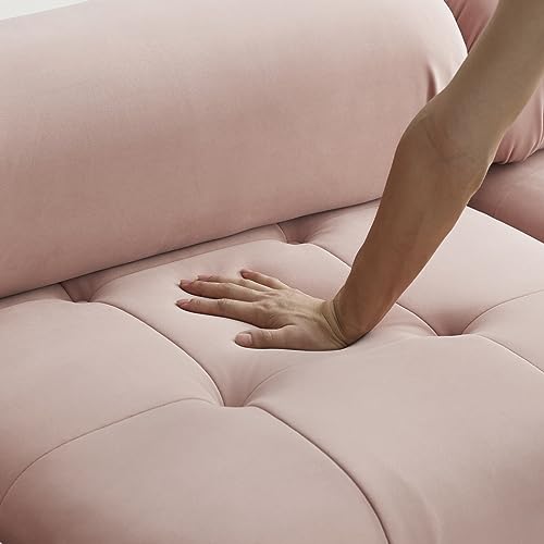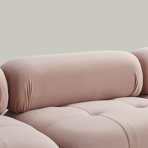 93" L-Shaped Sofa, Modular Sectional Sofa for Living Room, Minimalist Button Tufted Velvet Sofa Couch DIY Combination with Reversible Ottoman, for Living Room Apartment, Pink Velvet