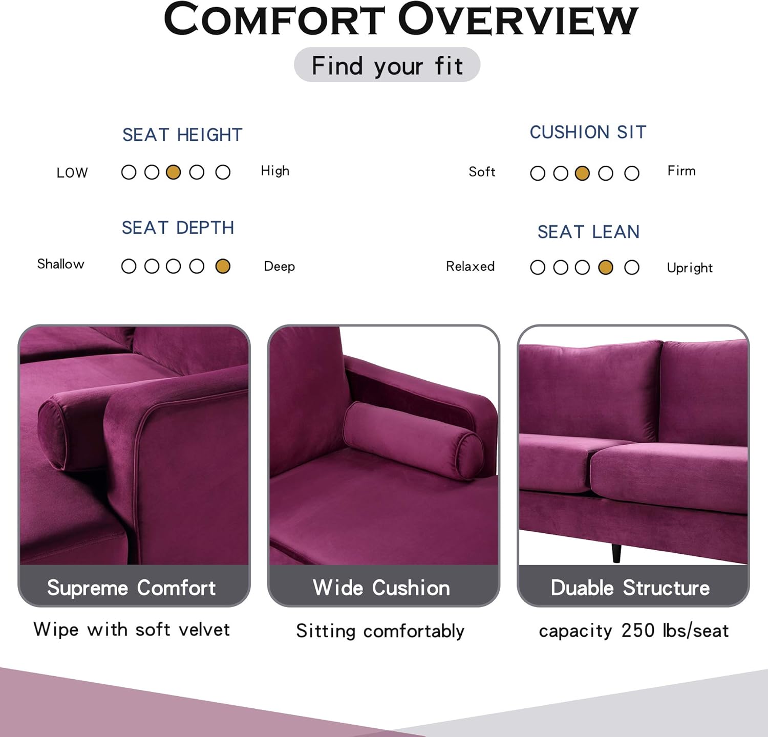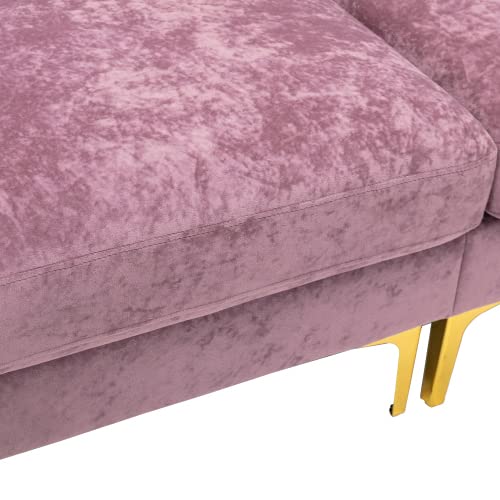 Harper&Bright Designs Sectional Sofa Set, Living Room Furniture Sofa Set, Modern Elegant Velvet Upholstered Couch with 2 Pillows (Purple)