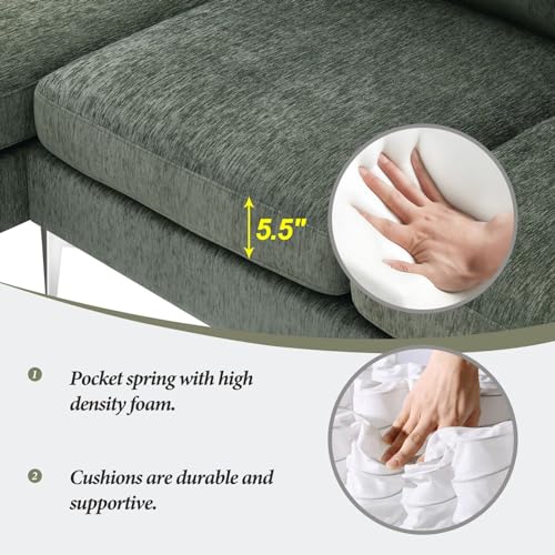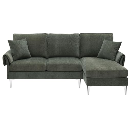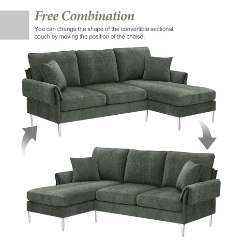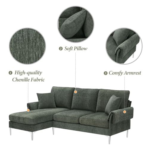 84" Convertible Sectional Sofa, Modern Chenille L-Shaped Sofa Couch with Reversible Chaise Lounge,with 2 Pillows,for Living Room, Apartment(Pink)