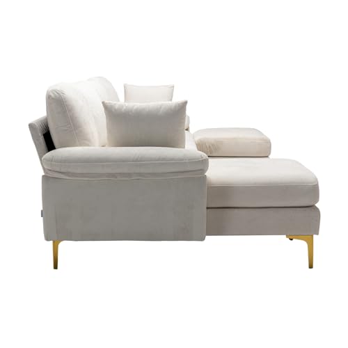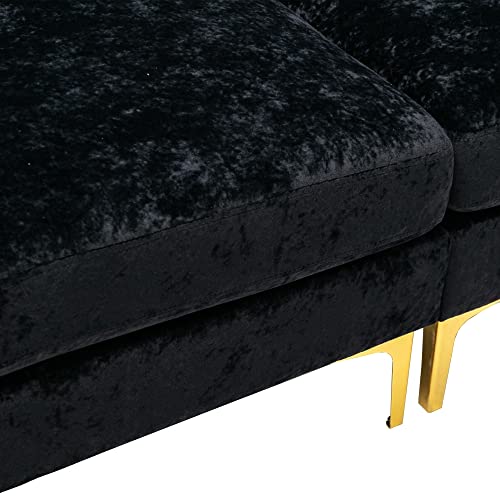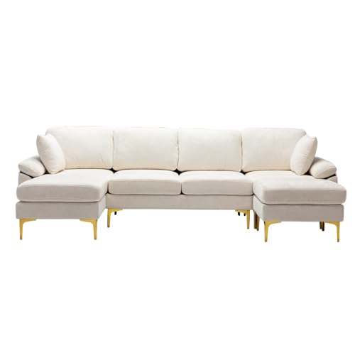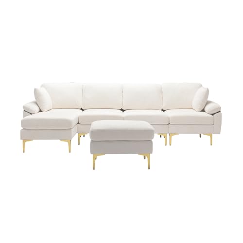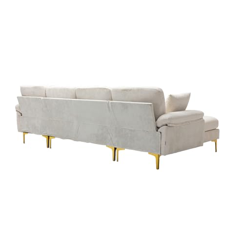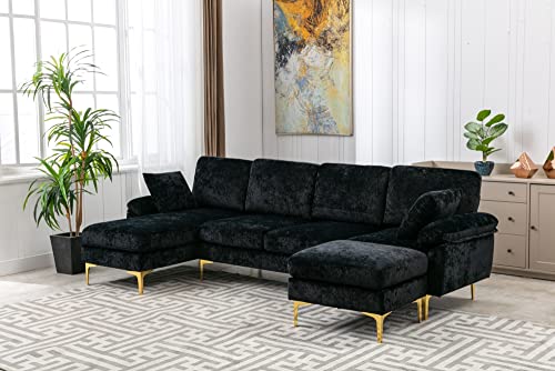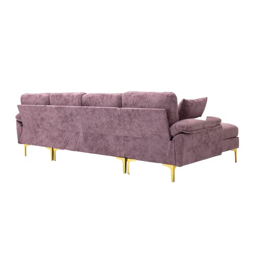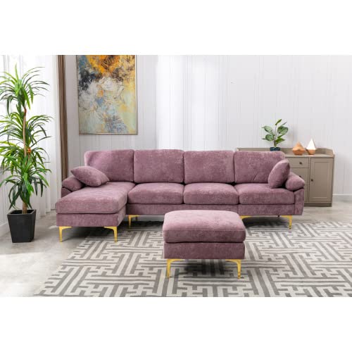 Large Sectional Sofa Couch & Ottoman Set, U Shape Sectional Sofa with 2 Pillows Living Room Modular Sofa Accent Sofa Chaise Lounge and Golden Legs (Purple)