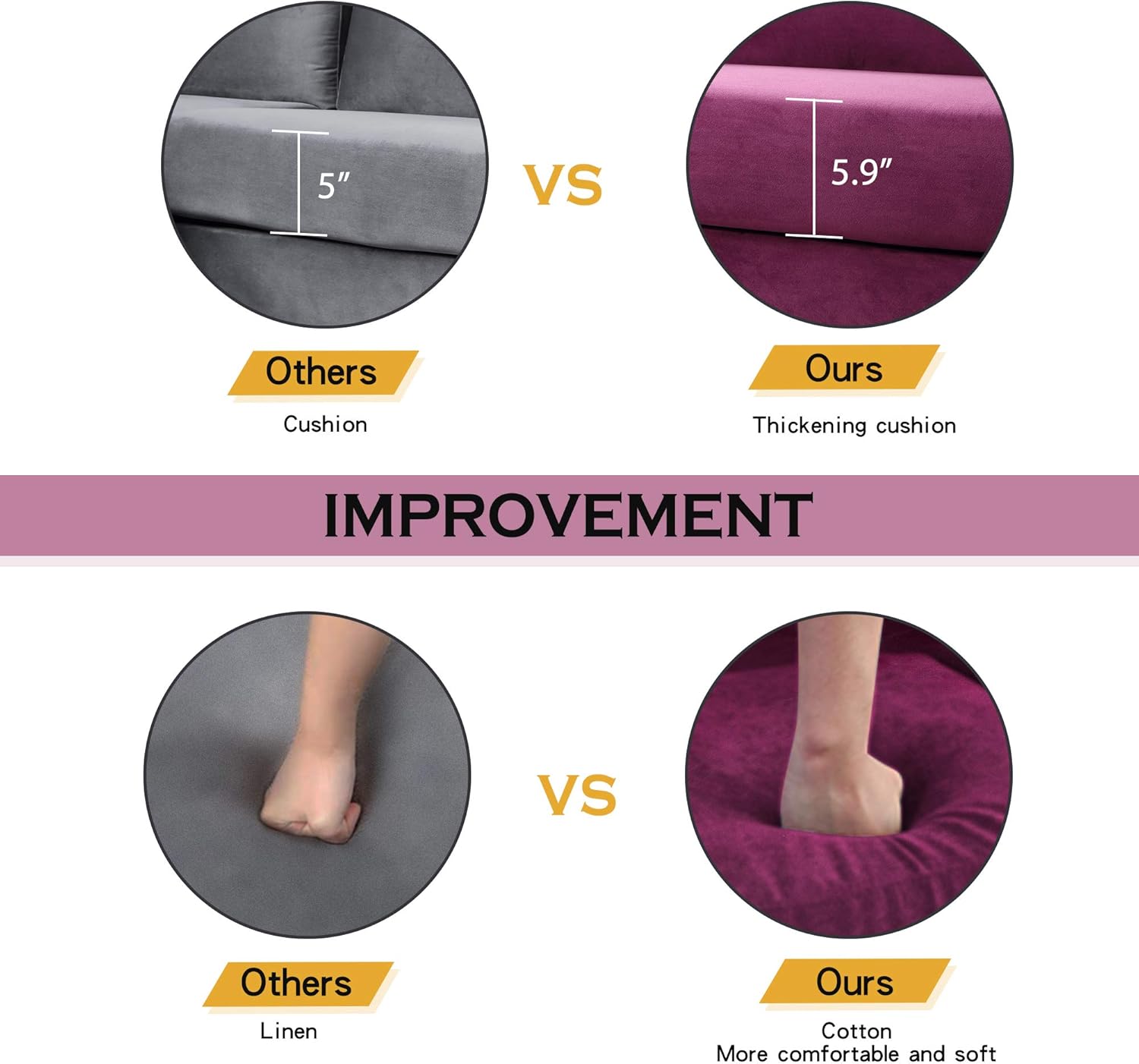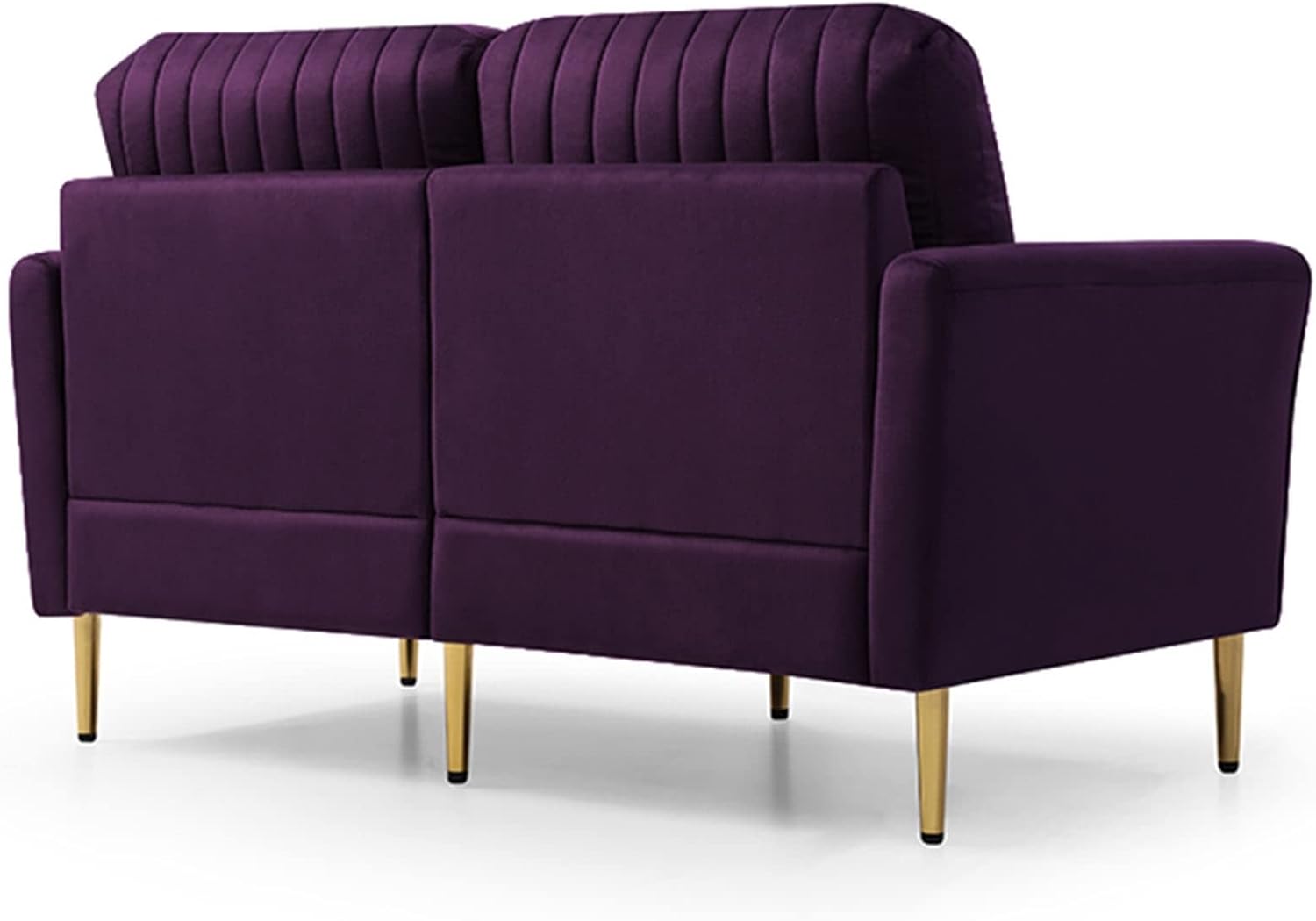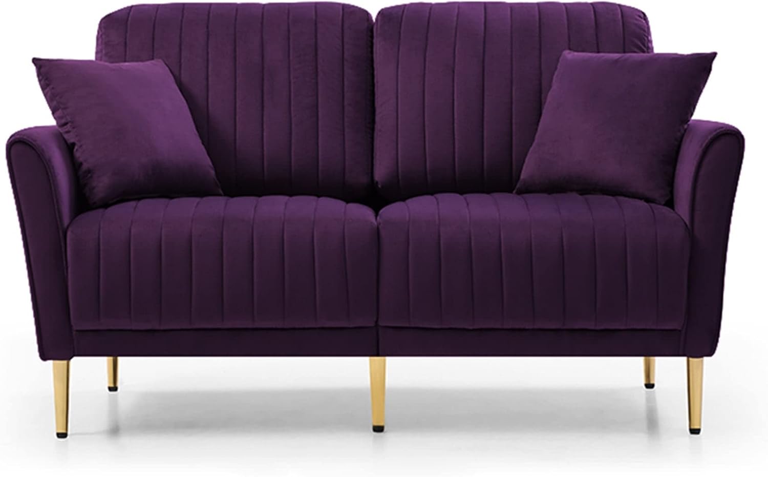 2 Piece Set with Sofa and Loveseat Couches Reversible Back Pillows Velvet Padded Seat Sectional for Living Room Armrest Purple Solid Modern Contemporary Pattern Down Fill Cushions