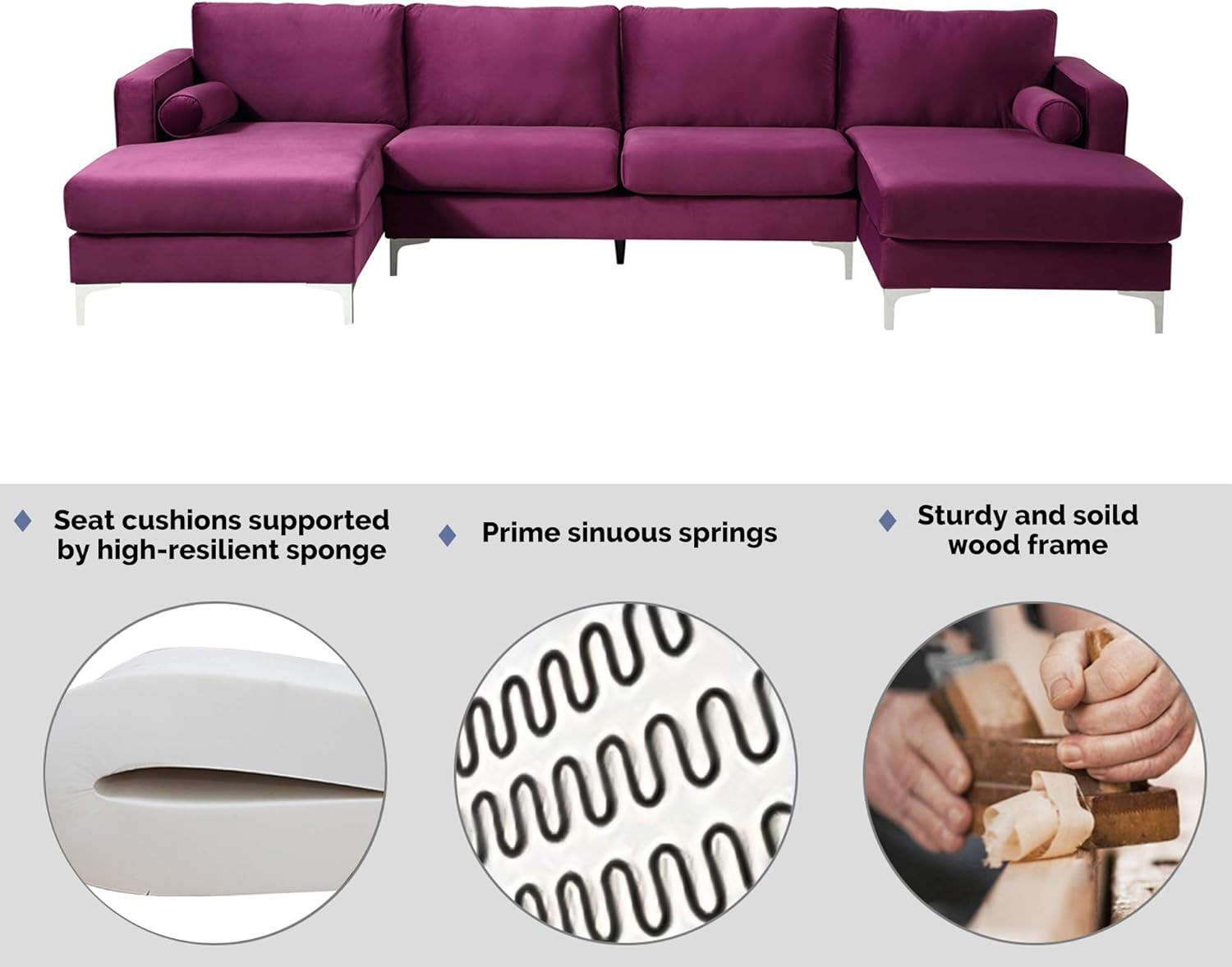 Convertible Sectional Sofa, Modern U-Shape Modular Couch, Living Room Sofa with Ottoman and 2 Small Pillows, Accent Sofa for Large Space, Apartment and Office, Purple