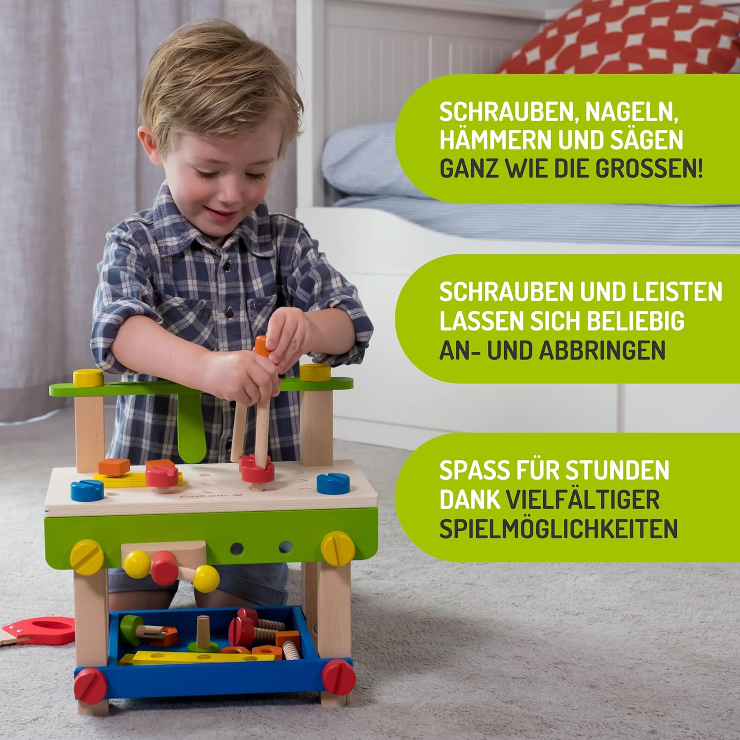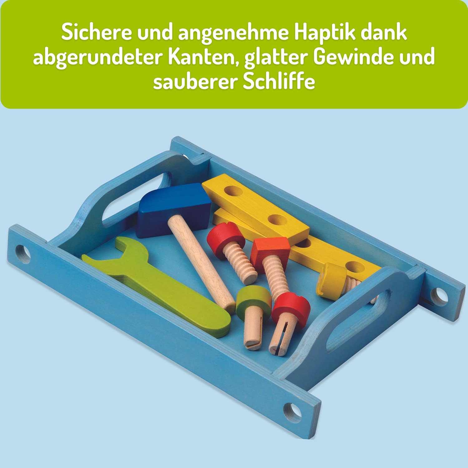 Toddler Workbench with Tools. Wooden Building Set Hammer Toy