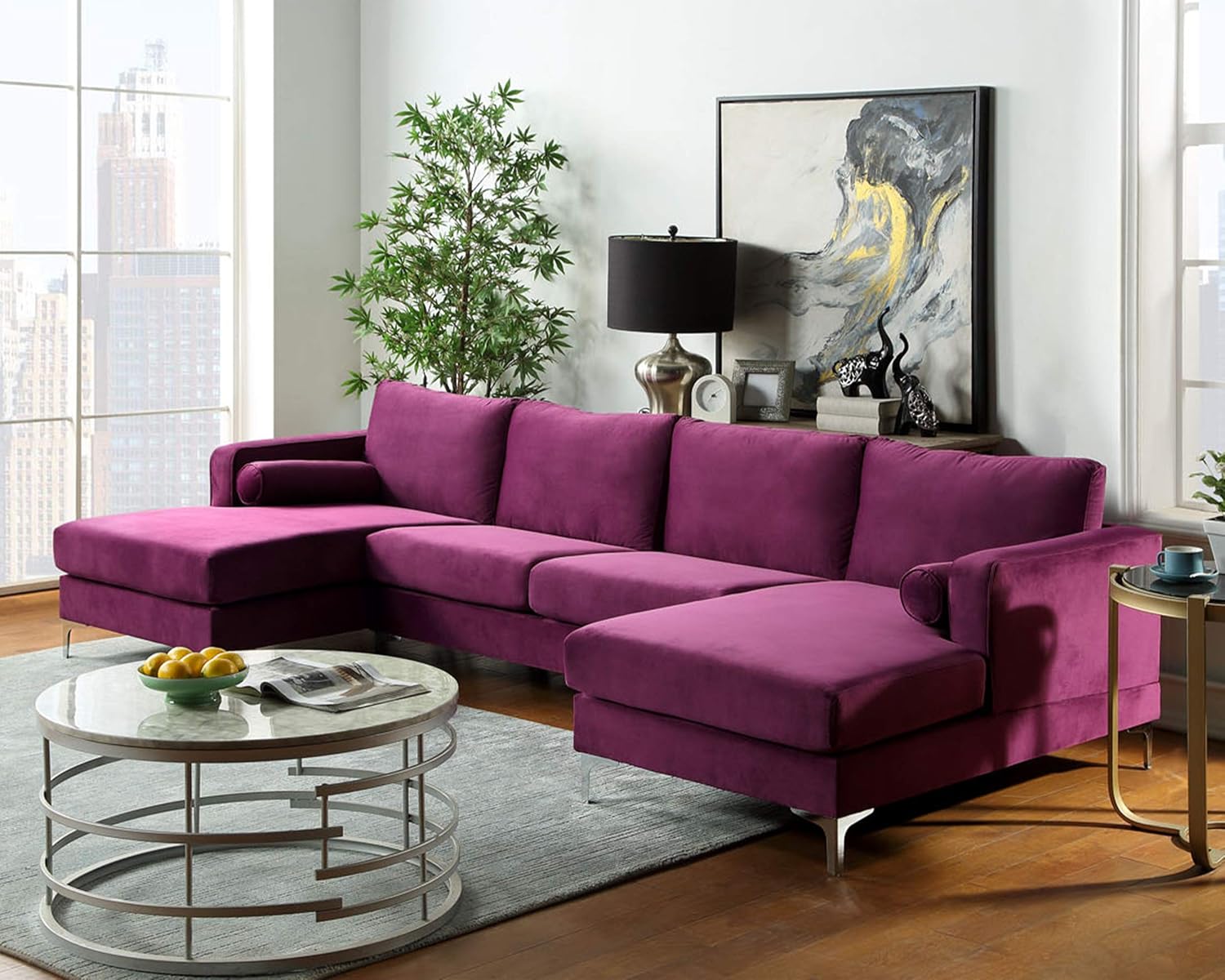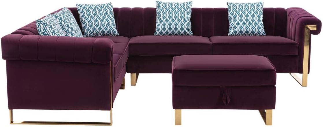 GOWE Maddie 109" Purple Velvet 6-Seater Sectional Sofa with Storage Ottoman
