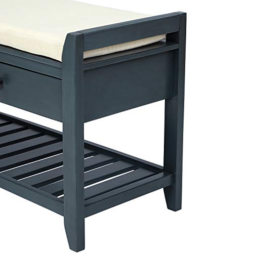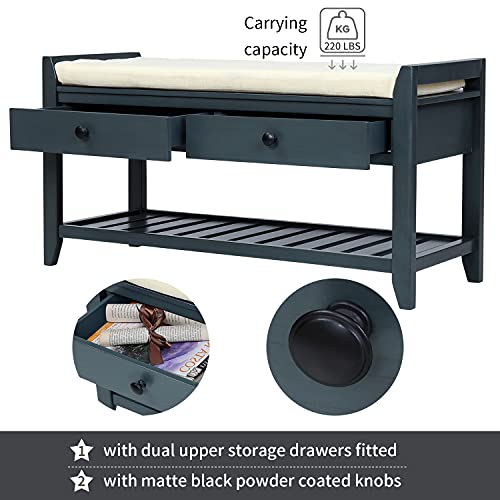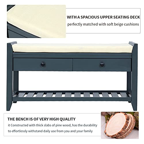 Wooden Storage Bench Basket and 2 Drawers, Fully Assembled Shoe Racks with Removable Cushion, for Entryway Living Room Bedroom, Espresso