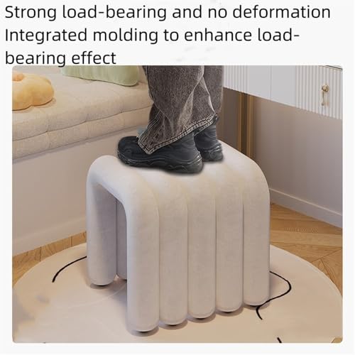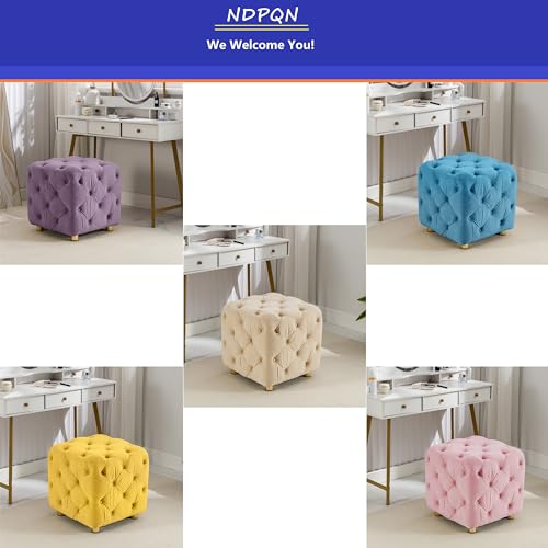 Vanity Stool Chair, Modern Terry Footstool, Thick Legs, Tufted Footstool for Extra Seating Dressing Room, Living Room, Entryway(Pink)