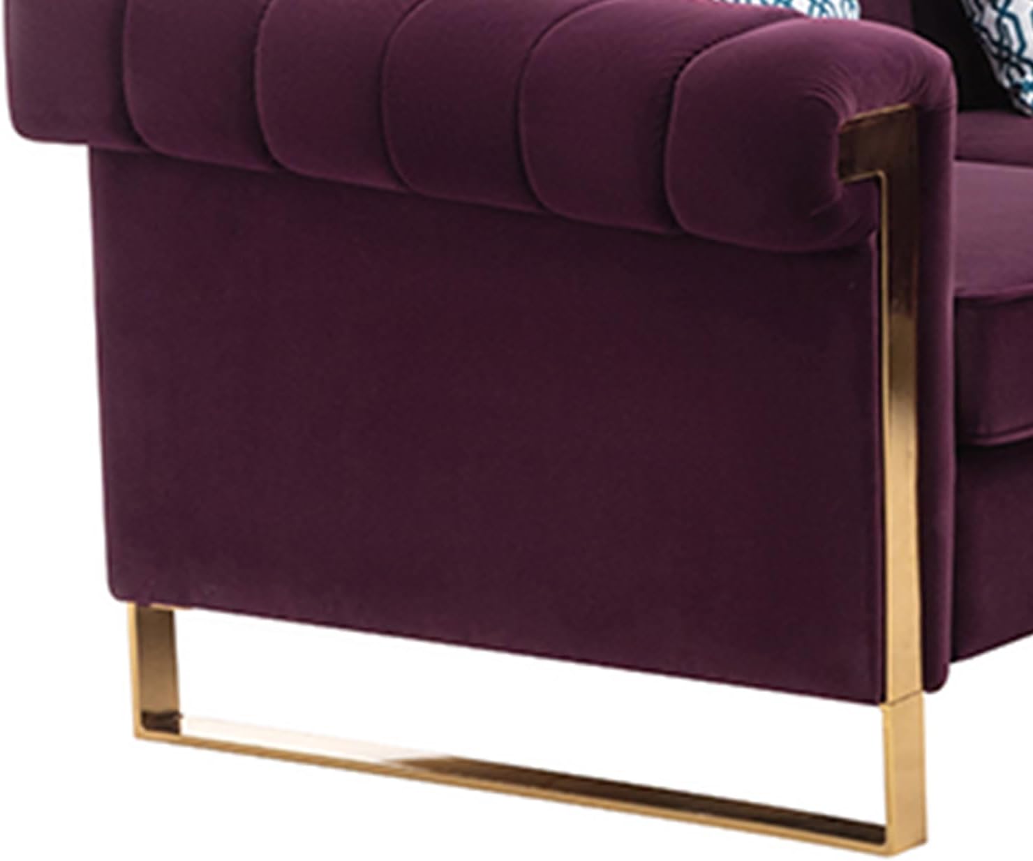 Modern Velvet Fabric Modular Sectional Sofas, mid-Century Style Channel Tufted Couch Sofa Set, Including 3 Seater Sofa, loveseat, Armchair and Ottoman (Purple, Loveseat + Loveseat)