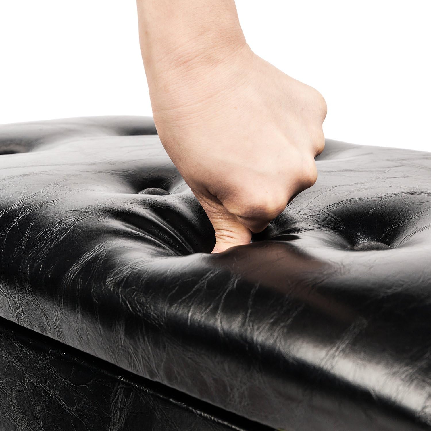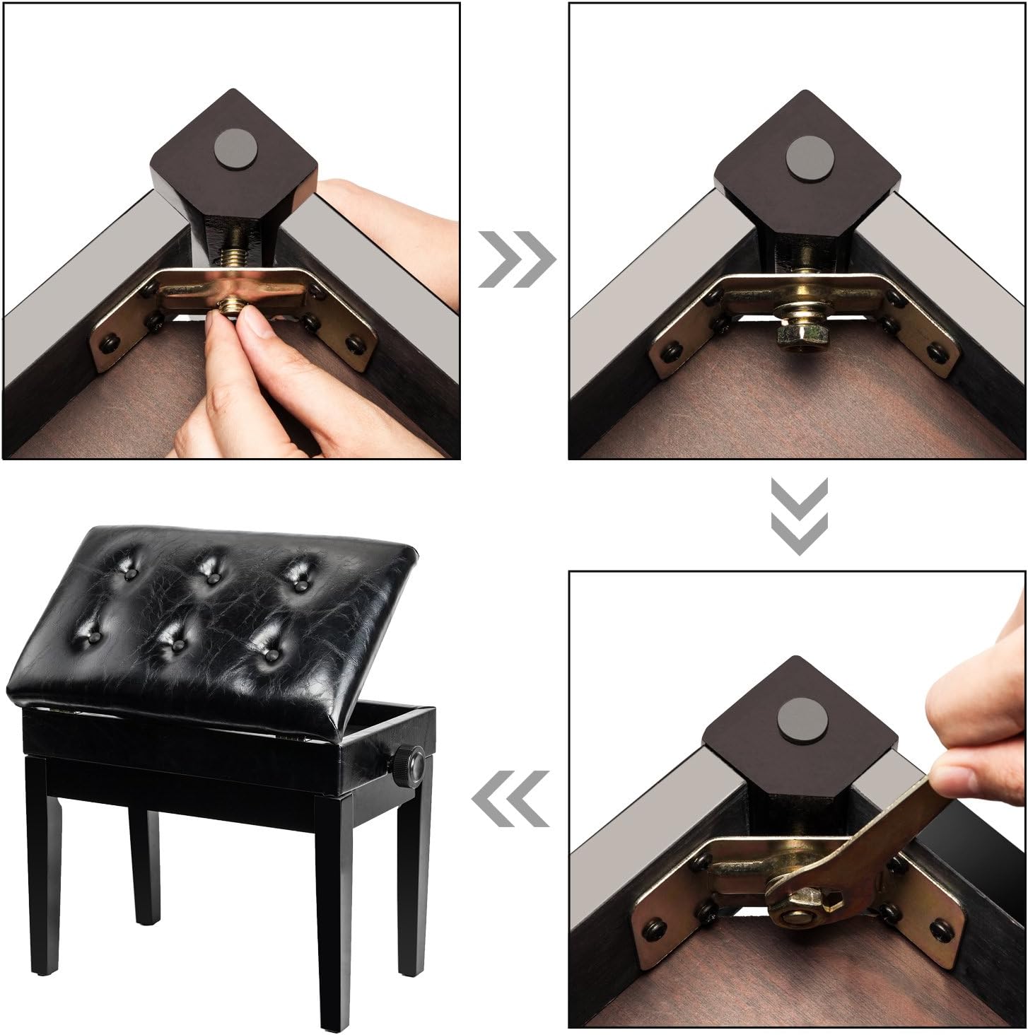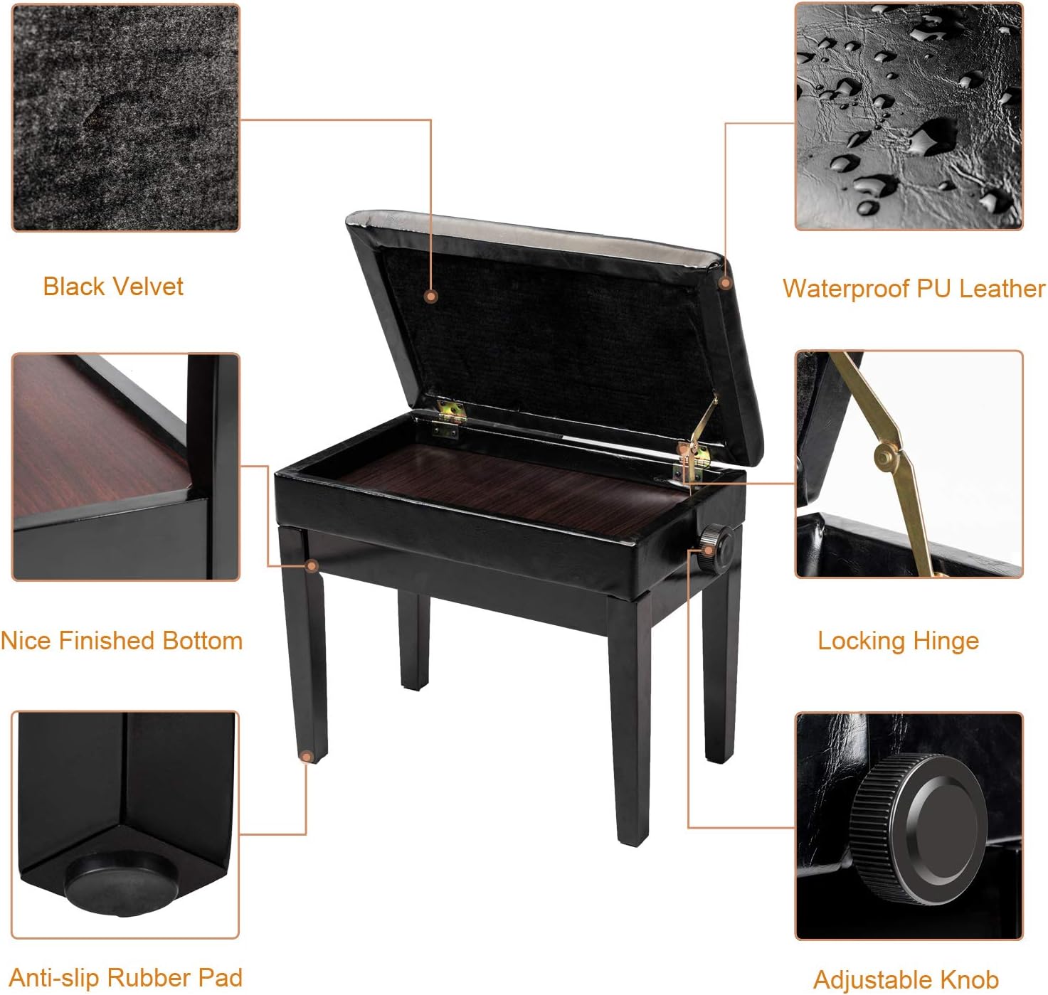 Bonnlo Adjustable Wooden Piano Bench Stool PU Leather Padded Seat with Music Storage Compartment, Black