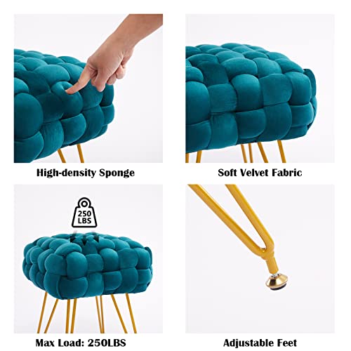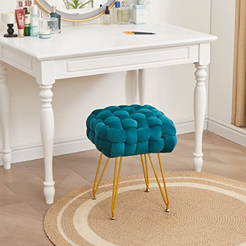 Vanity Stool for Makeup Room, Modern Velvet Vanity Chair with 4 Metal Legs, Ultra Soft Makeup Chair for Vanity, Footstool Ottoman with Anti-Slip Feet for Living Room, Bedroom, White