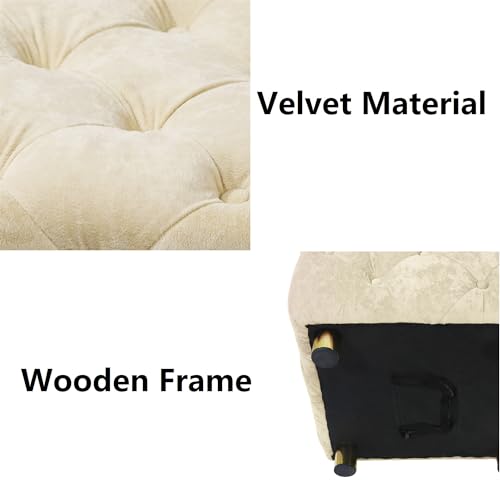 Modern Velvet Upholstered Ottoman, Exquisite Small End Table, Soft Foot Stool,Dressing Makeup Chair, Comfortable Seat for Living Room, Bedroom, Entrance (Pink)