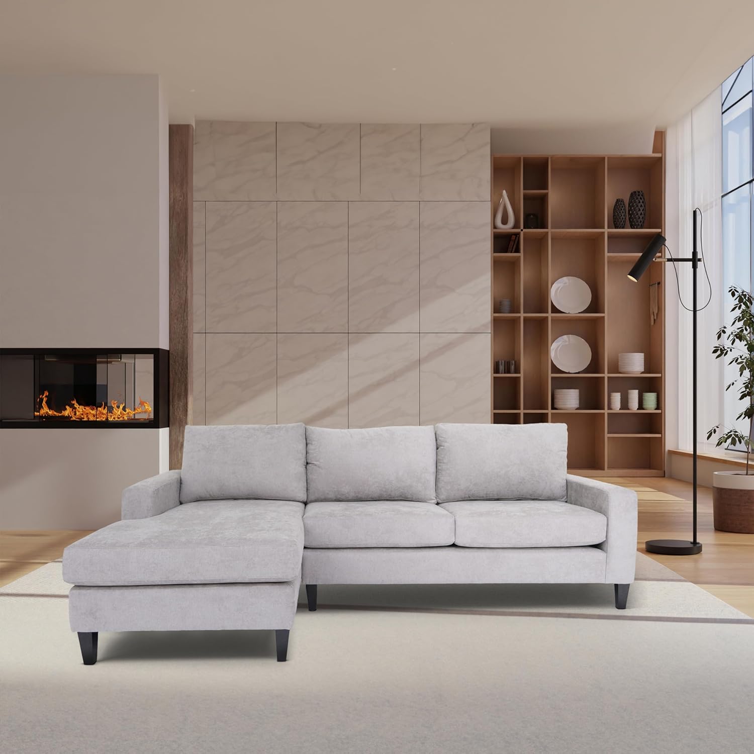 Grey L Shaped Sectional Sofas for Living Room, Modern Sectional Couches for Bedrooms, Apartment with Solid Wood Frame (Polyester Nylon, Left Facing)