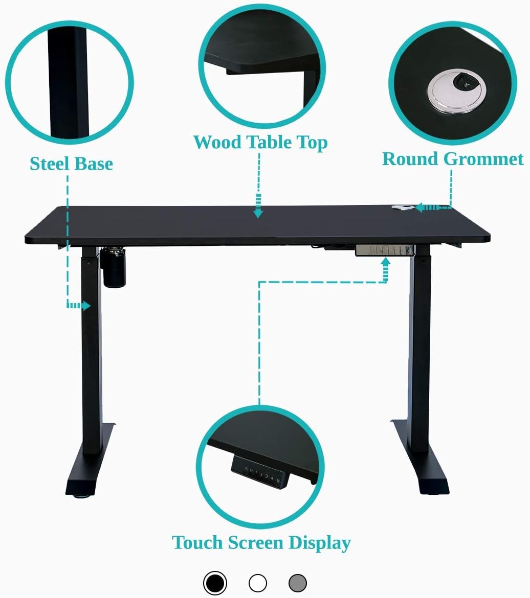 ErgoMax Electric Adjustable Single Motor Desk Frame w/Tabletop, 45.25 Inch Max Height, White