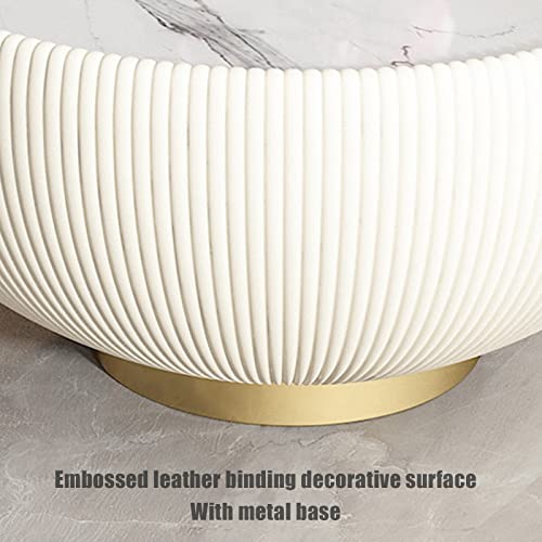 Modern Round Coffee Table, Marble Pattern Tabletop Leather Edge Sofa End Table with Metal base,Luxurious Side Table for Home Decor Living Room(17.7x18.5, Black)