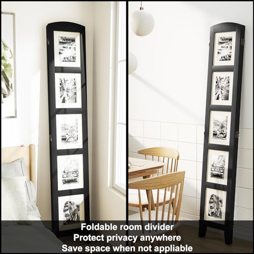 SZQINJI 3 Panel Photo Room Divider Screen, Solid Wood Divider for Room Separation for 8x10 Picture Frame without Mat for 5x7 Photo with Mat, Black