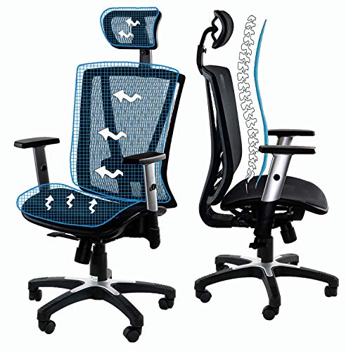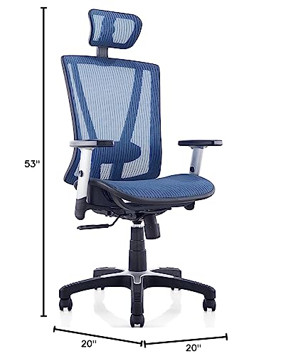 ErgoMax Ergonomic Adjustable All Mesh Breathable, Back Relief & Lumbar Support Home & Office Desk Chair, 53 Inch Max Height, Blue