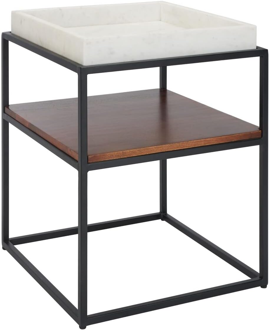 Safavieh Home Kya White Marble and Walnut 2-Tier Accent Table