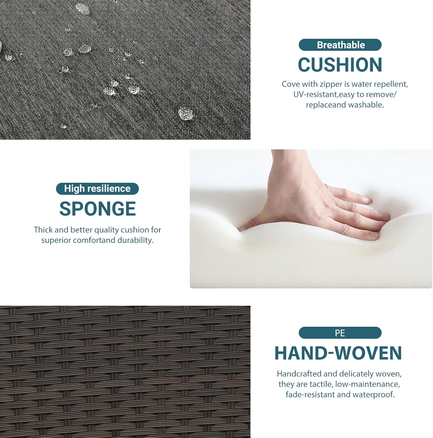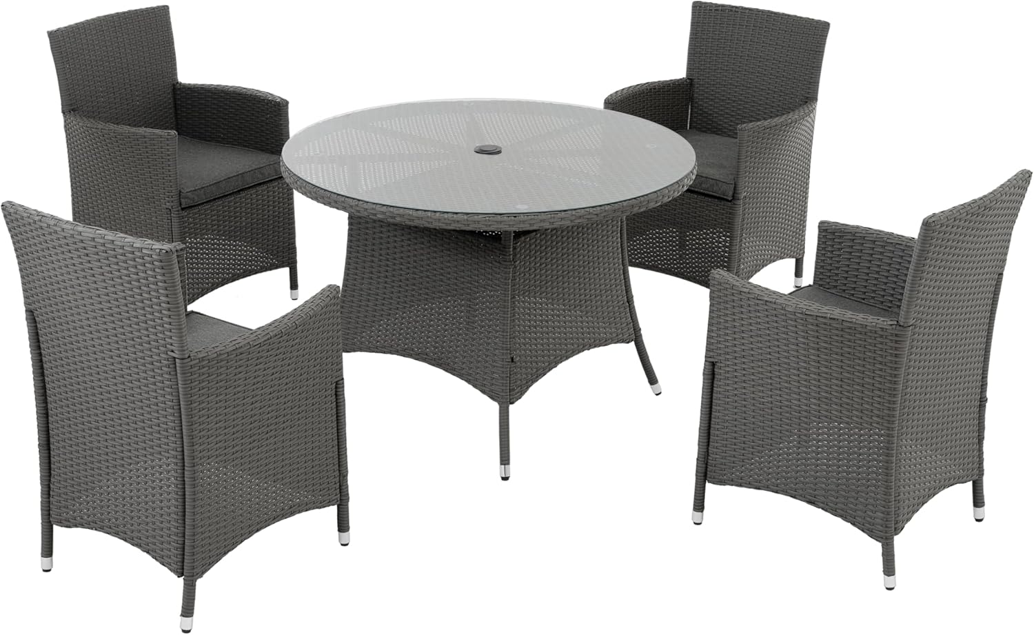 5-Piece Indoor Outdoor Wicker Dining Set Furniture with Cushions for Patio, Backyard w/Round Glass Tabletop, Umbrella Cutout, 4 Chairs, Grey