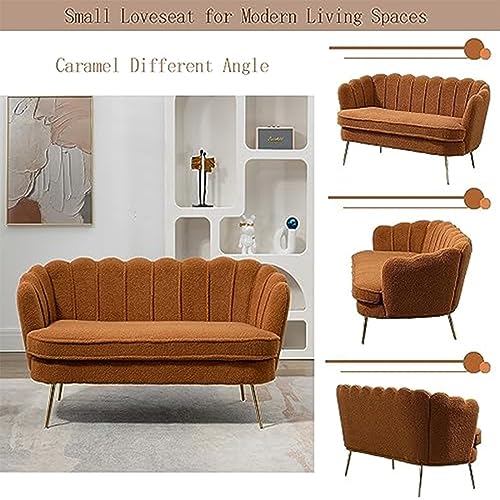 59" Wide Modern Boucle Loveseat Small Sofa Small Mini Room Couch Two-Seater Sofa with Gold Metal Legs for Small Space Office Studio Apartment Bedroom (Black)