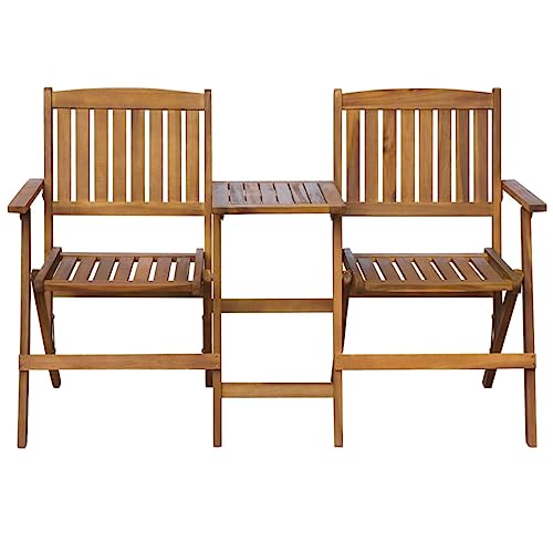 Patio Benches Folding Patio Bench with Tea Table 55.1" Solid Acacia Wood,Acacia Wood Patio Bench with Tea Table Rustic Outdoor Bench with Armrests for Garden, Patio, Deck Outdoor Seating Benches