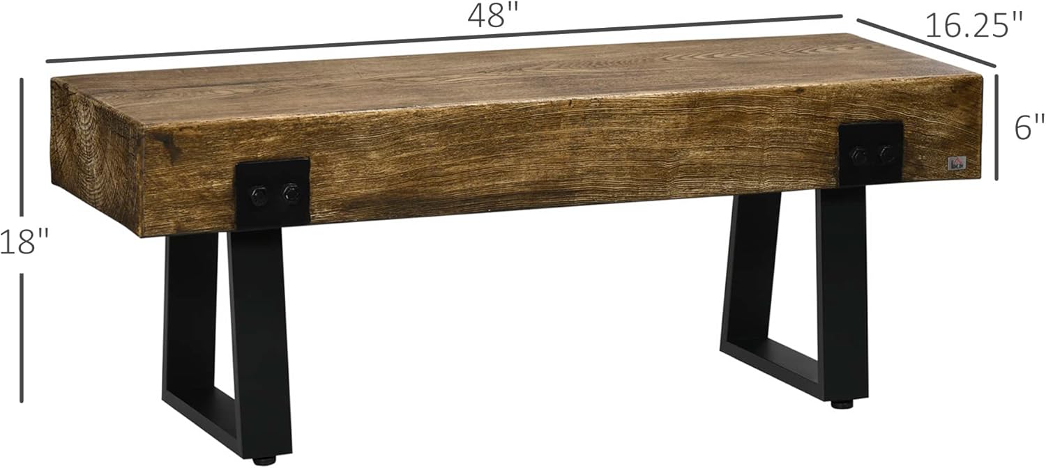 Garden Bench with Metal Legs, Rustic Wood Effect Concrete Entryway Bench, End of Bed Bench, Indoor Outdoor Use for Patio, Park, Porch and Lawn, Natural and Black