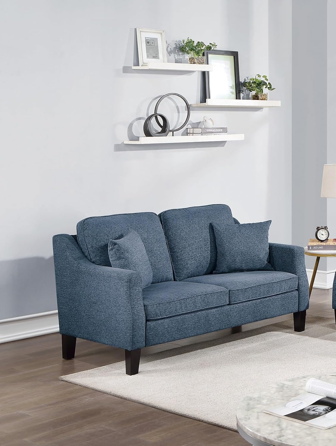 2pc Sofa Set Sofa and Loveseat Living Room Furniture Navy Blended Chenille Cushion Couch w Pillows